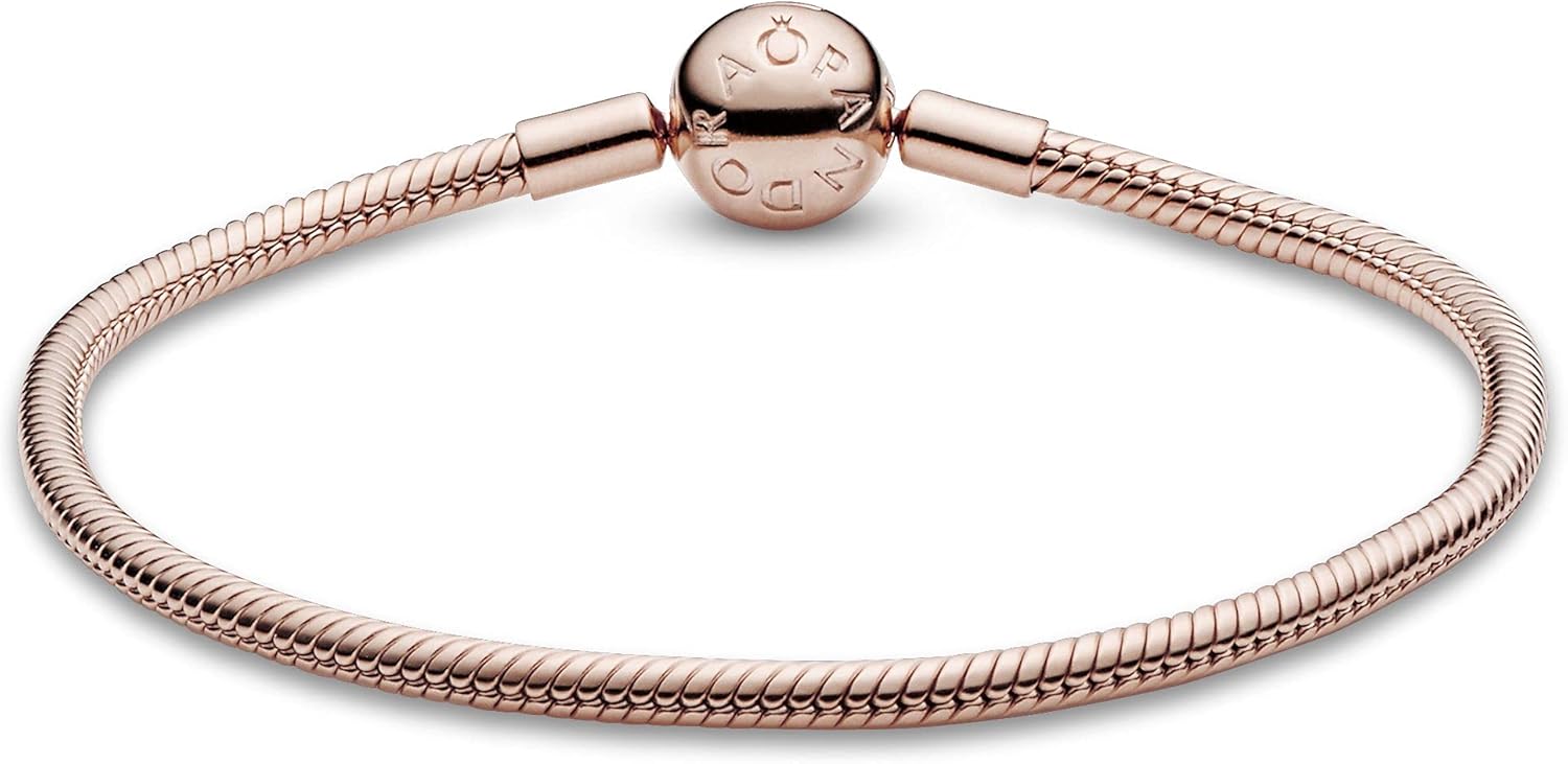 PANDORA Jewelry Smooth Moments Snake Chain Charm Rose Bracelet, 7.9″