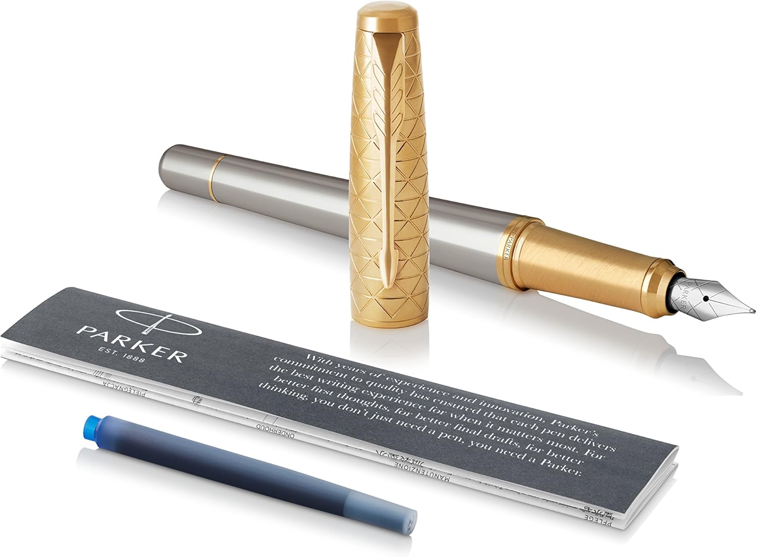 A stylishly reliable writing partner, PARKER IM Fountain Pens pair smart, polished designs with a sleek tapered shape. Crafted with a range of innovative finishes with a classic yet contemporary beauty, these PARKER fountain pens deliver a timeless appeal. The executive pens combine a comfortable shape with a durable stainless steel nib that delivers the perfect writing angle. For use with QUINK ink cartridges or convertible to ink bottle filling. Stylish simplicity meets over 125 years of brand heritage with PARKER IM fountain pens.