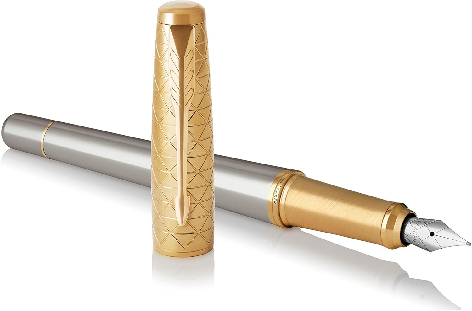 PARKER Urban fountain pens take over a century of tradition into dynamic new territory. With its curved design and eye-catching finishes, these fine pens were crafted to complement personal style and elevate the confidence behind every word. The ergonomic shape balances perfectly in your hand while the durable stainless steel nib is shaped to provide the optimal writing angle. For use with QUINK ink cartridges or convertible to ink bottle filling. Choose from a variety of finishes and trims to find the PARKER pen that suits your personal style.
