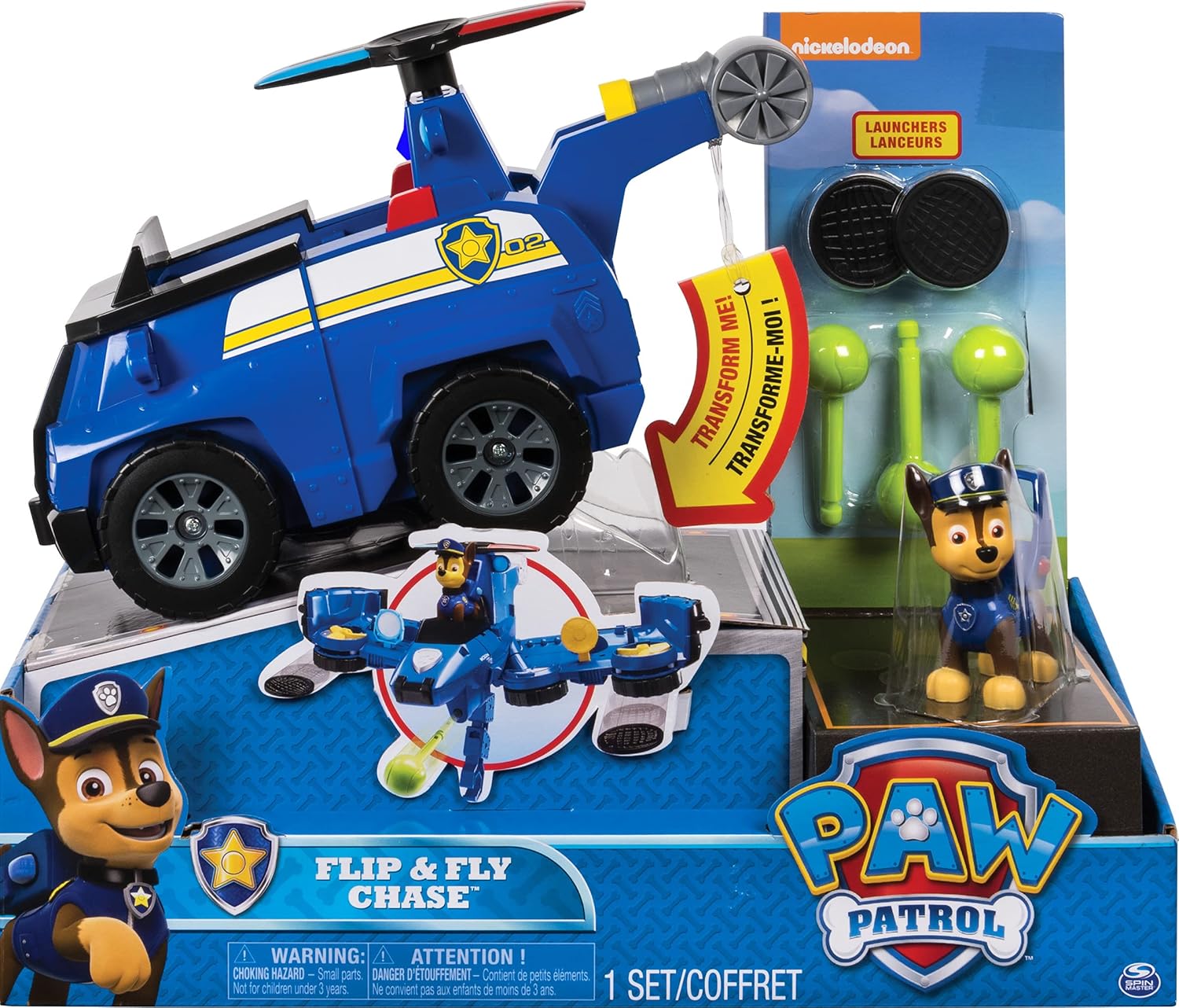 - Flip & Fly Chase brings all the excitement and adventure of the Paw Patrol to life! Kids can have fun with this 2-in-1 vehicle, transforming it from a police cruiser to a jet!