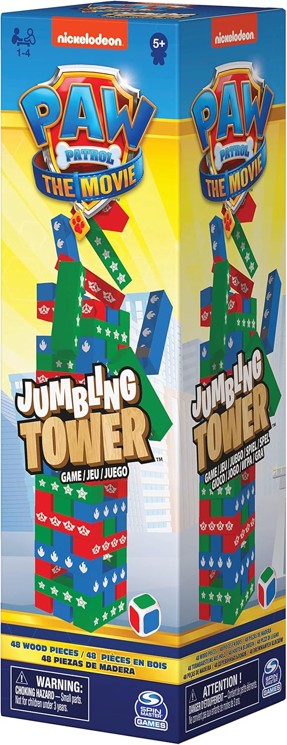 Can you keep the PAW Patrol Jumbling Tower from crashing down? Grab a colourful wood piece from the tower block and stack it on top. The more you stack, the more likely it will fall. First you roll the die then grab a colourful wood piece to remove. Chase the wooden blocks, Marshall out your choice, and Skye it to the top. But be careful that the PAW Patrol Jumbling Tower doesn’t turn to Rubble. Have fun on your own or grab a group of friends and see how long you can keep the Paw Patrol Jumbling Tower up. Recommended for ages 4 and up. Cardinal offers a wide range of quality family-friendly games, innovative puzzles and contemporary and evergreen licensed products for game and puzzle lovers of all-ages. PAW Patrol Jumbling Tower Game is for ages 4+.
