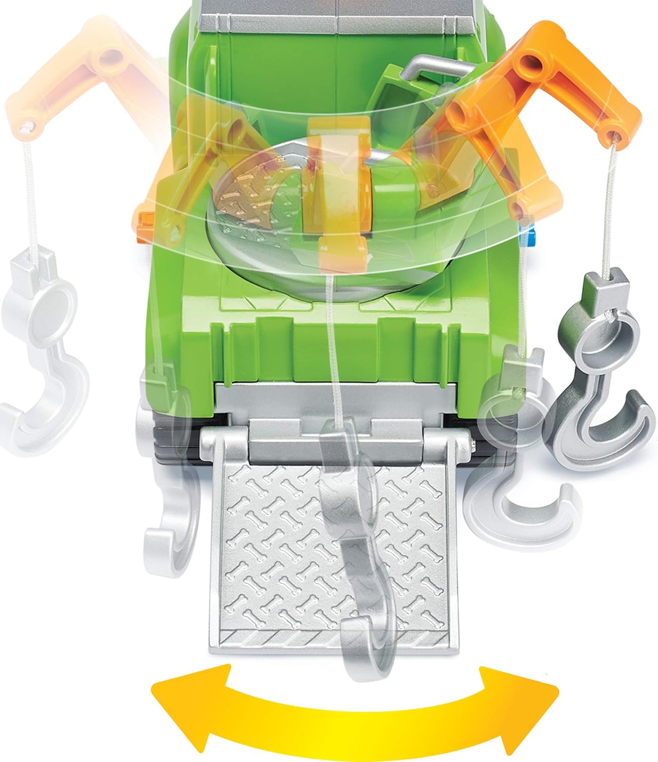 Recycling truck toy with moving crane: green means Go! Join Rocky on his recycling truck, equipped with working wheels, a flip-open ramp and a moving rescue crane!