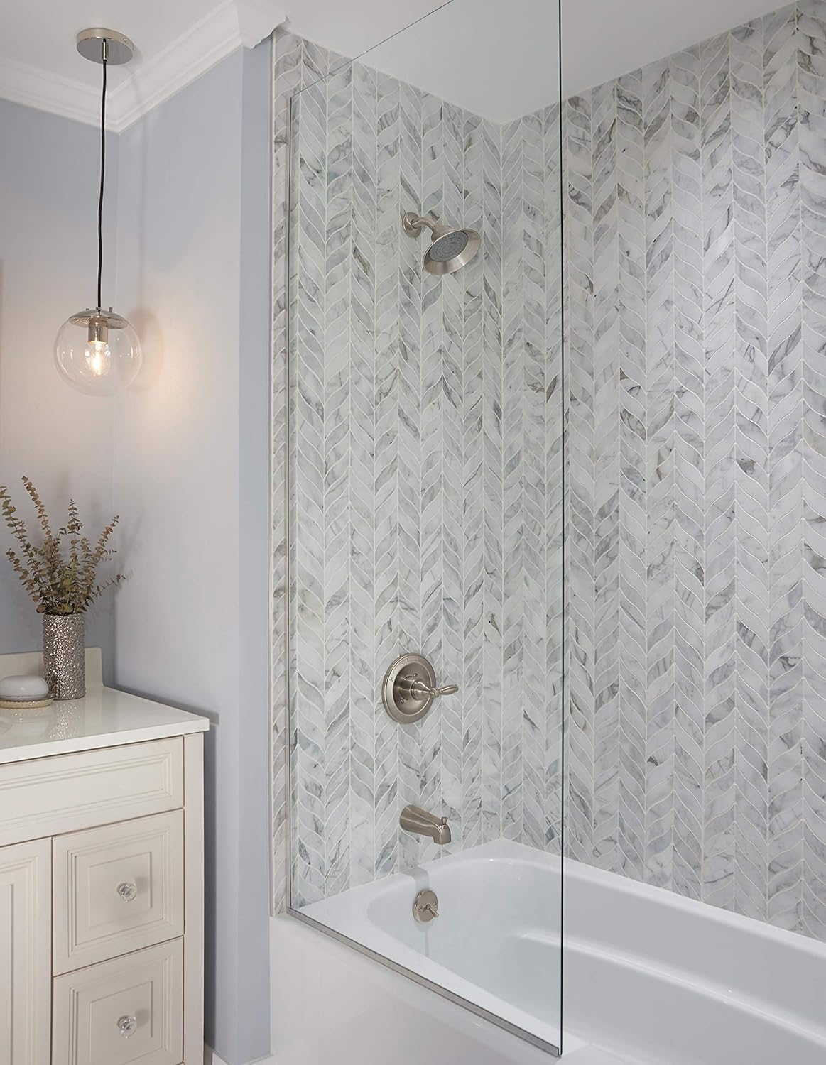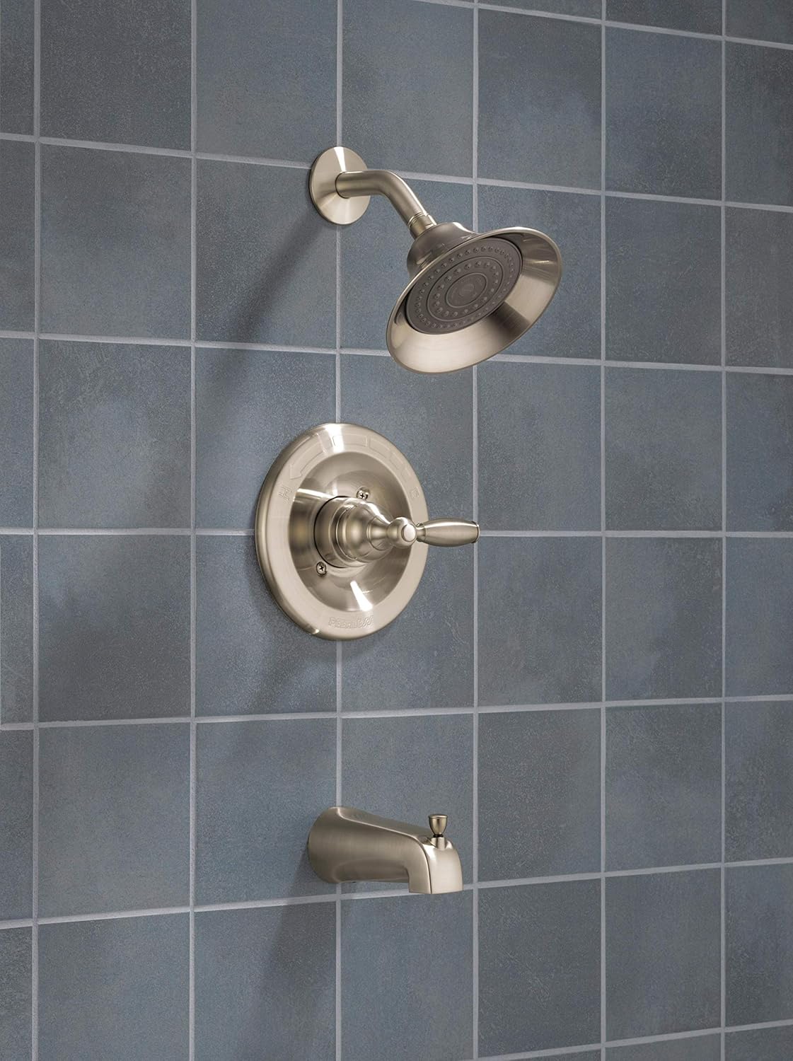 Peerless Claymore Single-Handle Tub and Shower Faucet Trim Kit with Single-Spray Shower Head, Brushed Nickel PTT188790-BN (Valve Not Included)