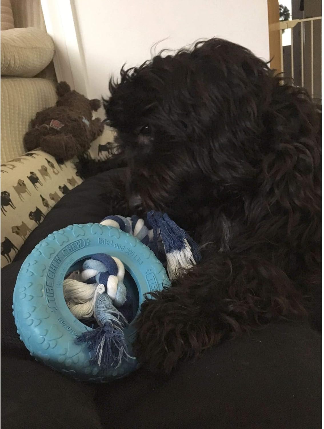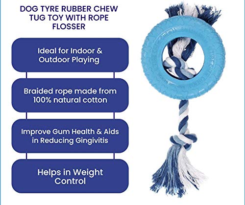 • Dentist recommended – Safety tested non-toxic natural rubber dog tire and cotton rope toy with cleaning floss fibers