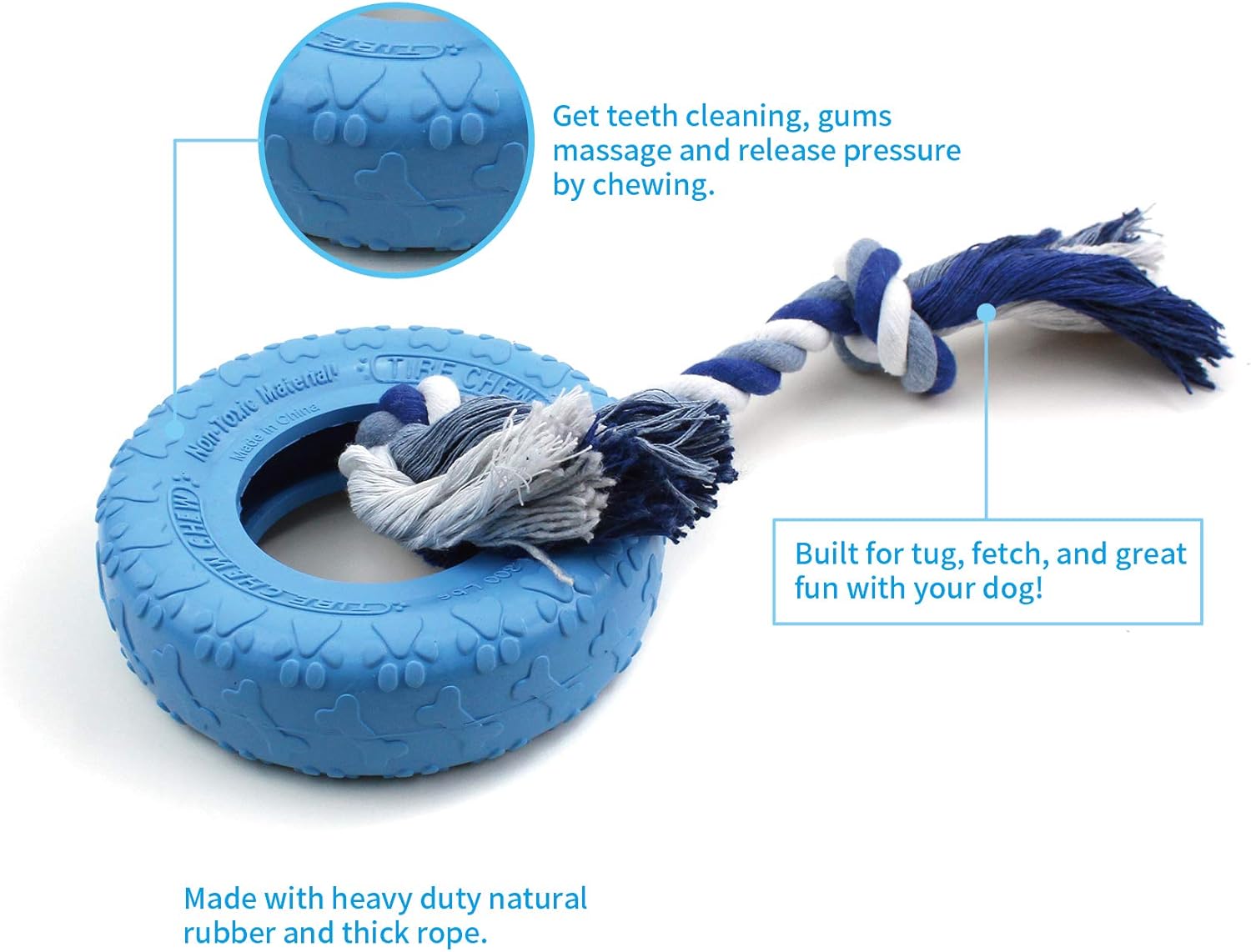 Pet Dentist Dog Tire Rubber Teething Chew Toy Dental Care Dog Rope Gum Tug Flosser (Blue)