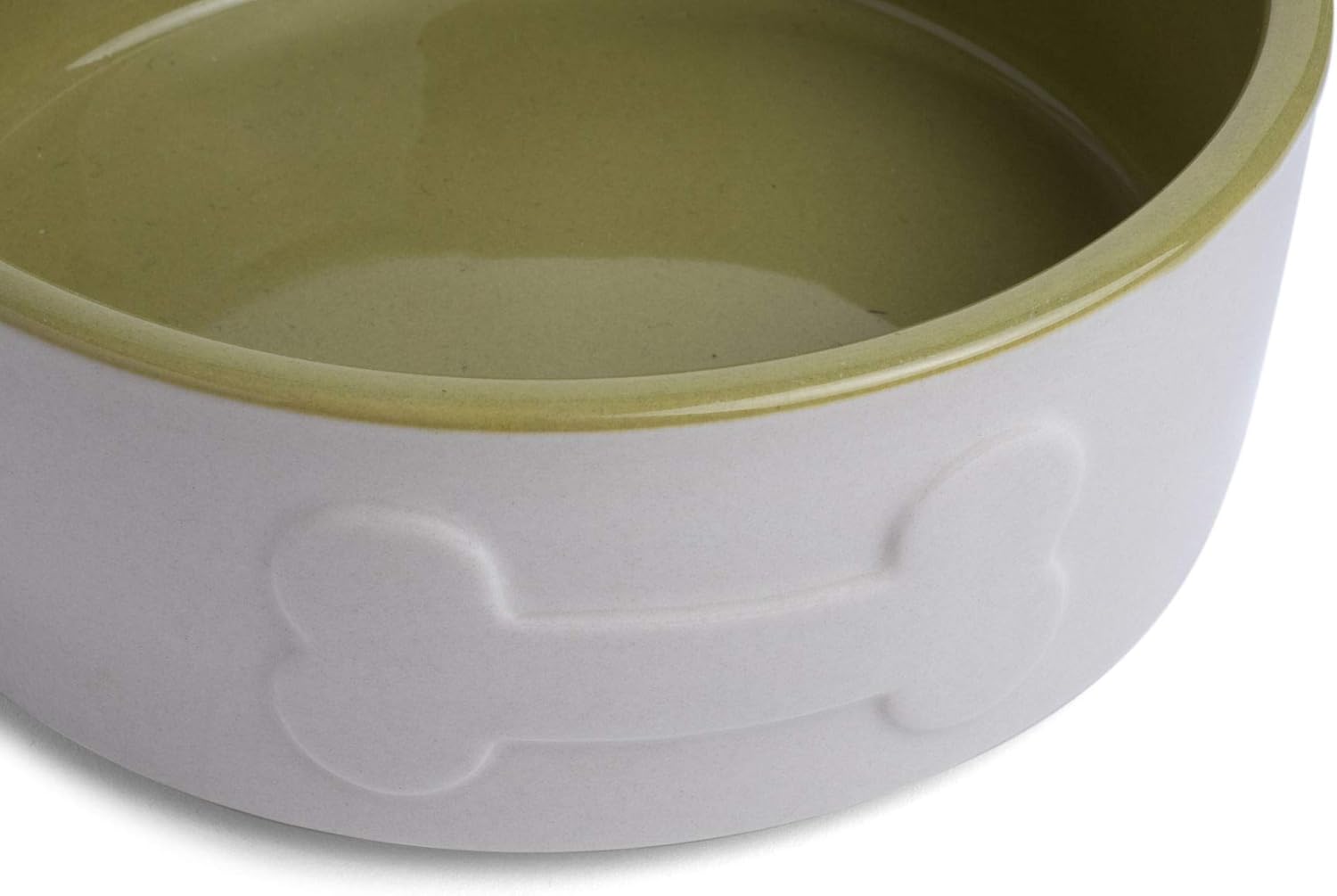 Petface Bone Ceramic Dog Bowl, 20 cm, Cream/Green
