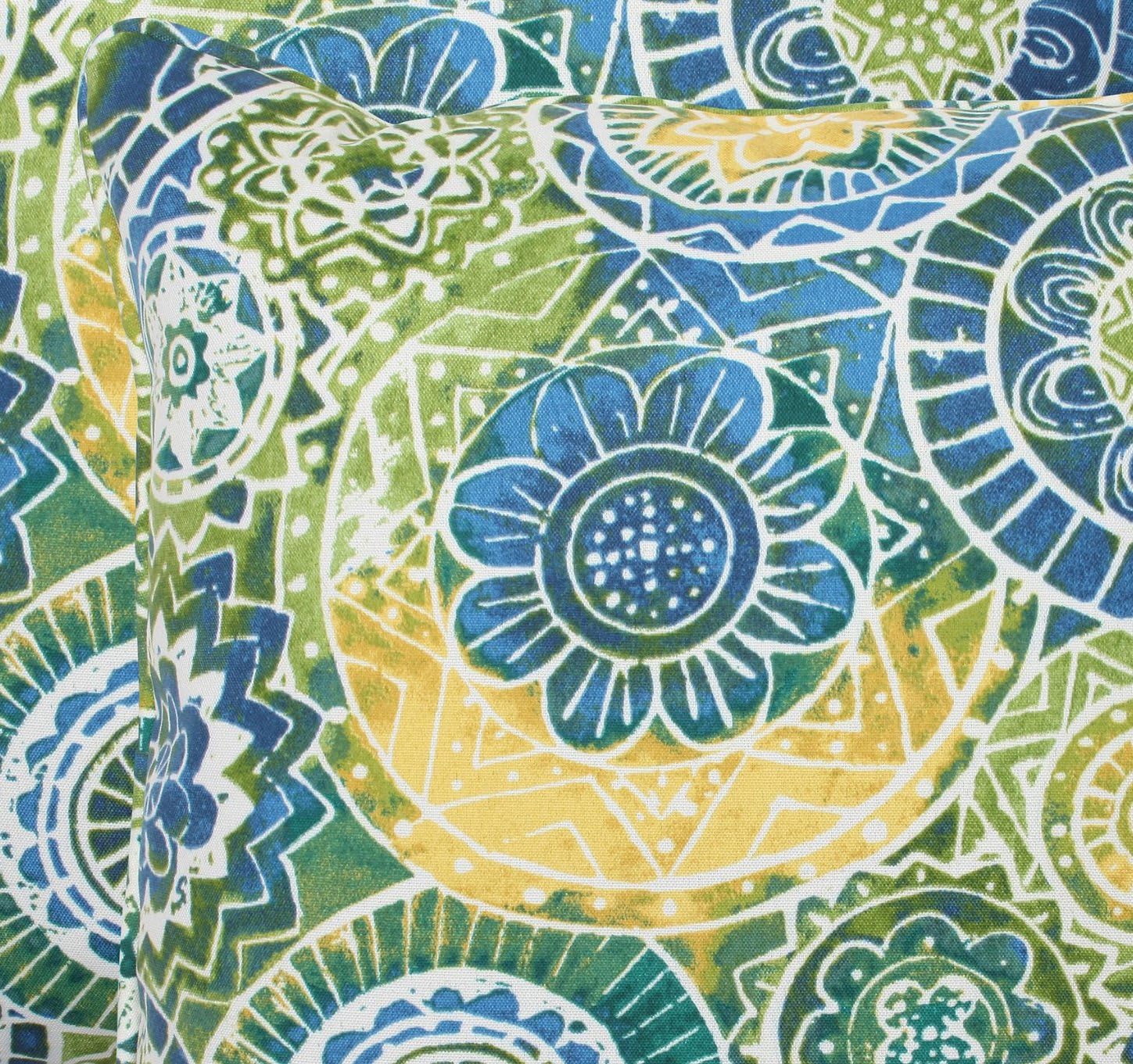 - Edges of outdoor pillows are trimmed with matching fabric and cord to sit perfectly on your outdoor patio furniture