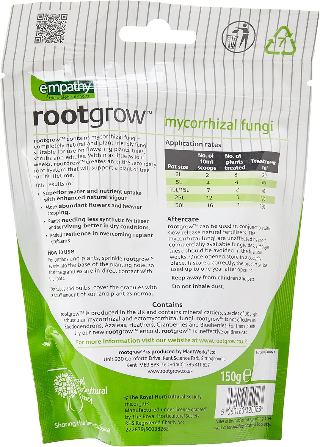 Mycorrhizal fungi are essential to soil life, continually growing out from the roots of a treated plant into the soil, finding new sources of nutrients and water. This huge secondary root system increases the nutrient flow to the plant over its entire lifetime, resulting in ‘stronger healthier plants.’ Planting with rootgrow mycorrhizal fungi is the best planting practice, improving establishment, natural vigour and ultimately flowering and fruiting.