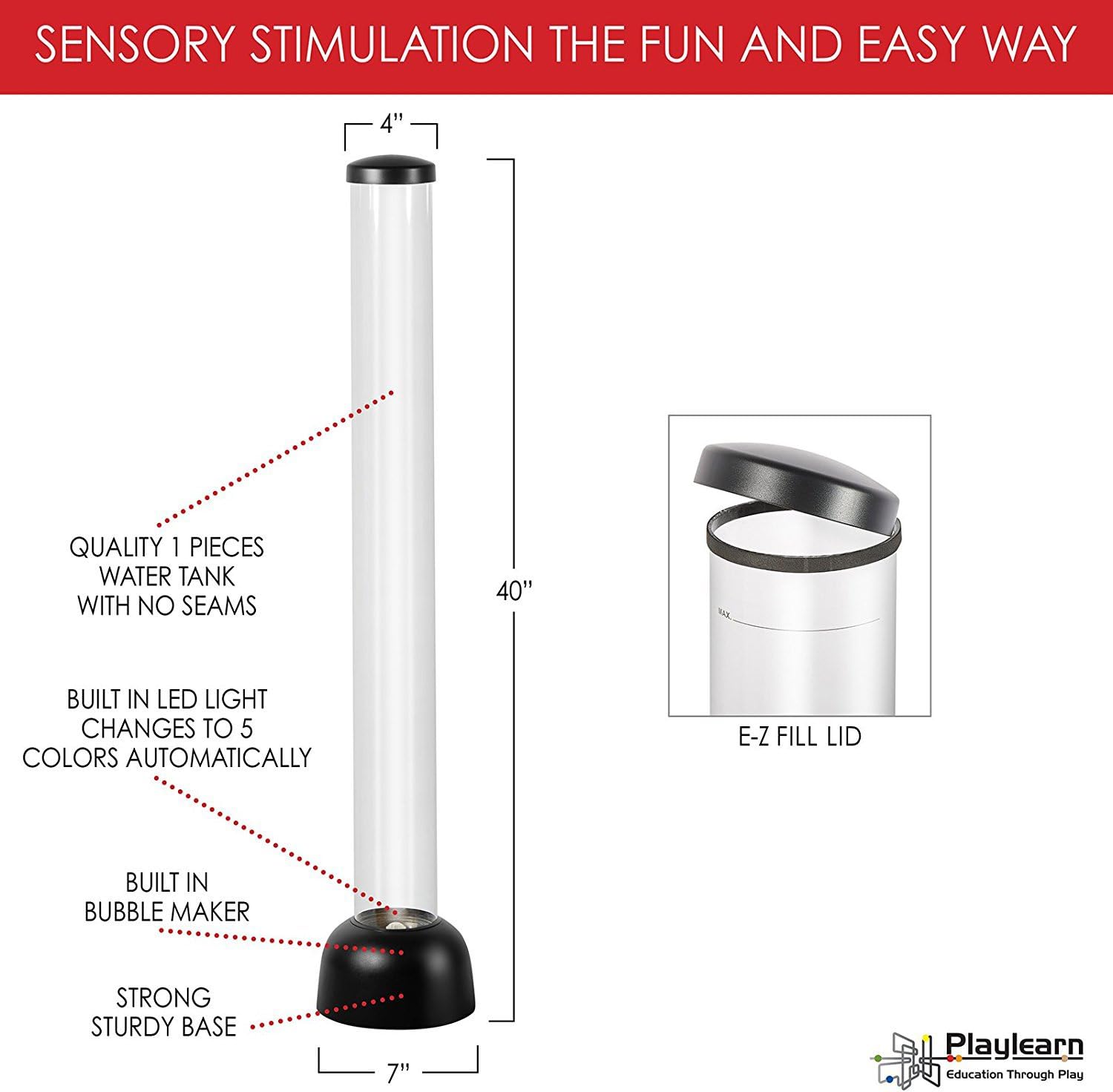 Promotes Children EducationThis Sensory LED Bubble Tube with Fake Fish Tank designed to stimulate the five senses while promoting the development of fine motor, object tracking, color and shape recognition, and more. The repetitive movements of the bubbles and fish with alternating colors and the soft “buzz” of the machine provides the perfect stimulation for individuals with special needs, autism, ADHD and dementia, schools |