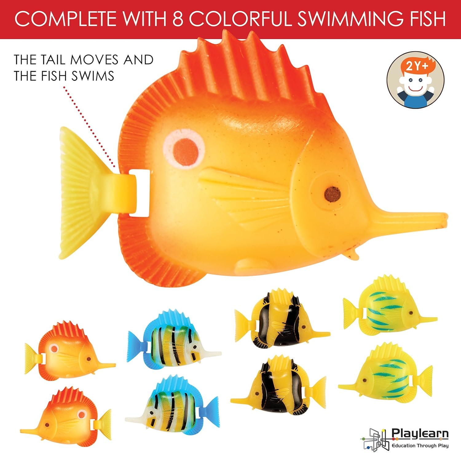 LED lights change bubble colors and pretend fish bob in the tank, as the pump hums gently. This combination stimulates the senses, The soft “buzz” sound can function as a sound machine to help your child relax and go to sleep. Watching the fish & bubbles float has a soothing, calming effect, particularly for autistic children.