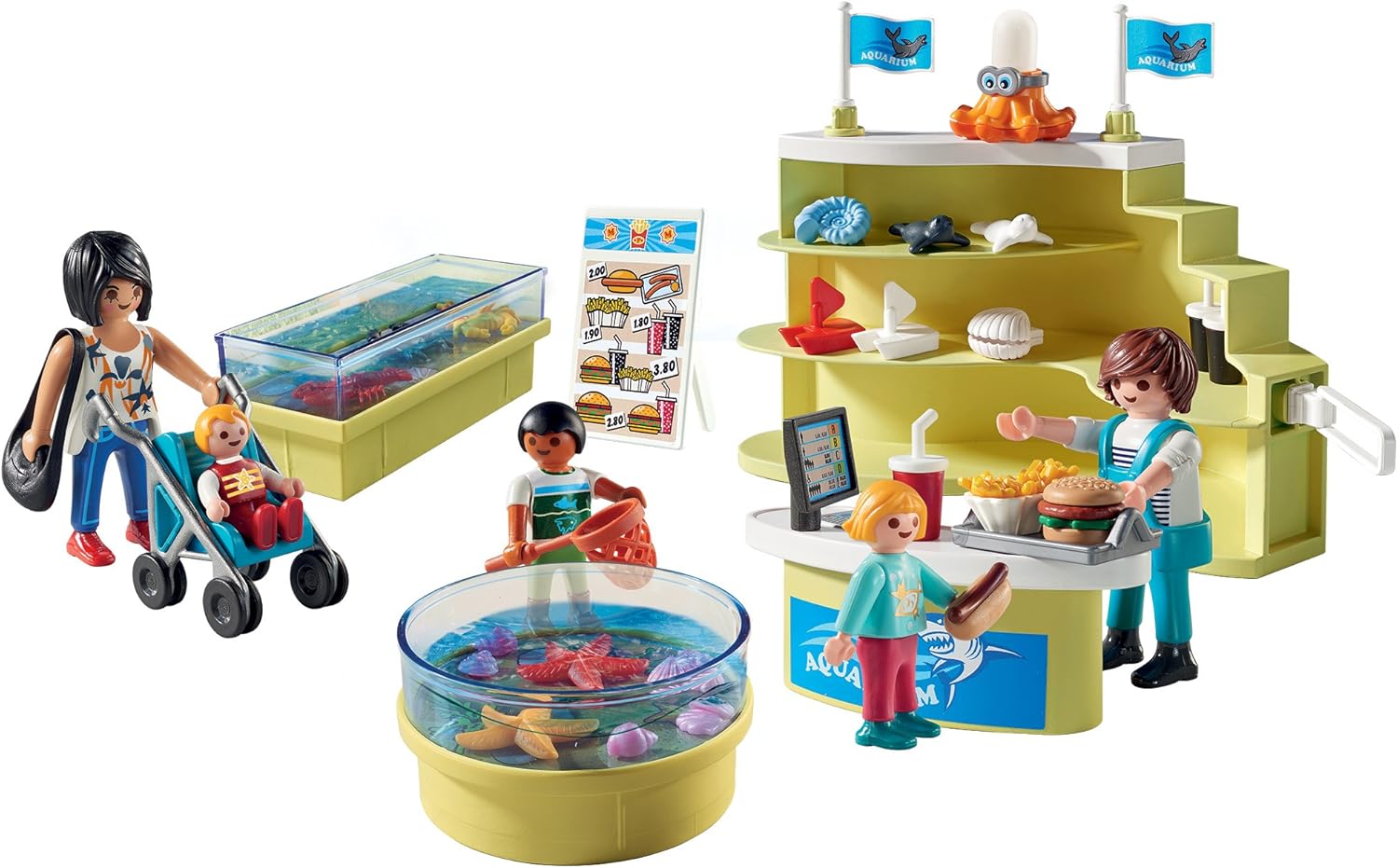 - Set includes two adult figures, three child figures, cash register, stroller, and other accessories