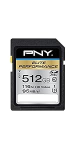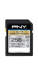 PNY 256GB Elite Performance Class 10 U3 SDXC Flash Memory Card – 95MB/s read, Class 10, U3, 4K UHD, Full HD, UHS-I, Full Size SD