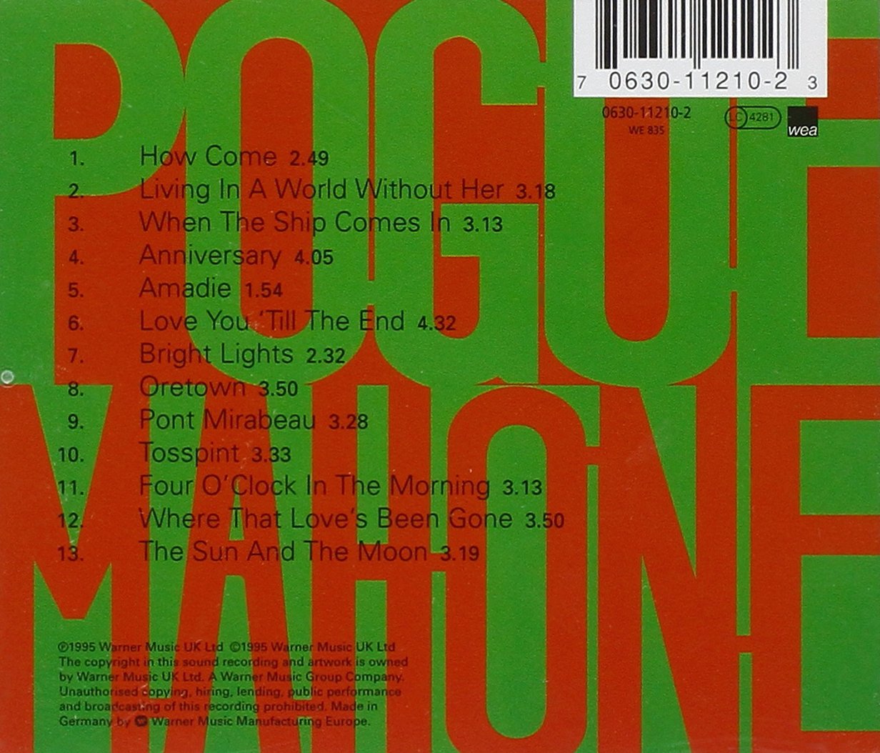 Pogue Mahone (Gaelic for ”kiss my arse”) is the seventh and final studio album from lauded progressive Irish folk pioneers the Pogues. After the departure of Shane MacGowan, co-founder Spider Stacy found himself at the helm, singing and sharing songwrit