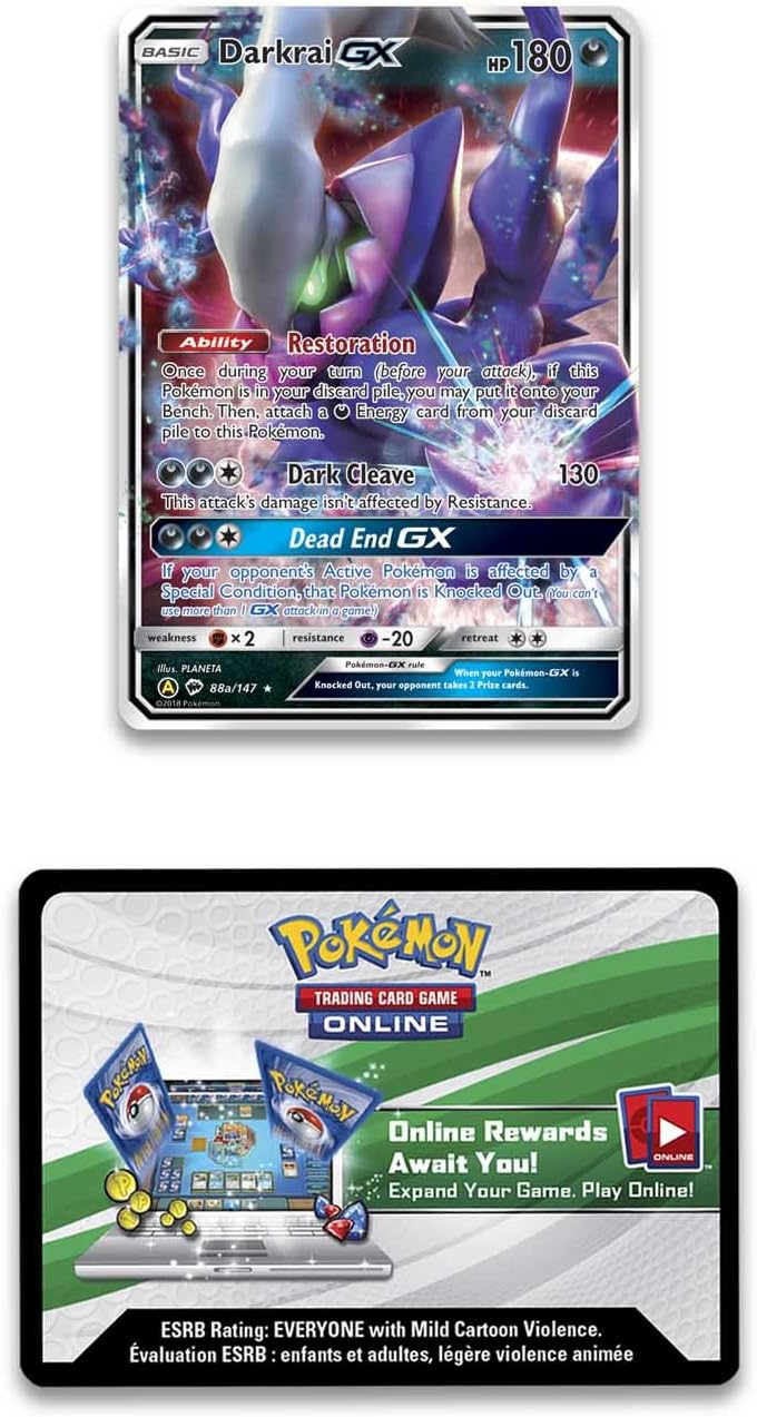 A mythical Pokémon with immense power, Darkrai haunts dreams and fills in the strange shadows of the Pokémon world You can grab a piece of that power with this collection includes a sculpted Pokémon figure and a playable foil promo card featuring Darkrai as a rare shiny Pokémon. Prepare to rule the darkness with a little help from Darkrai-GX