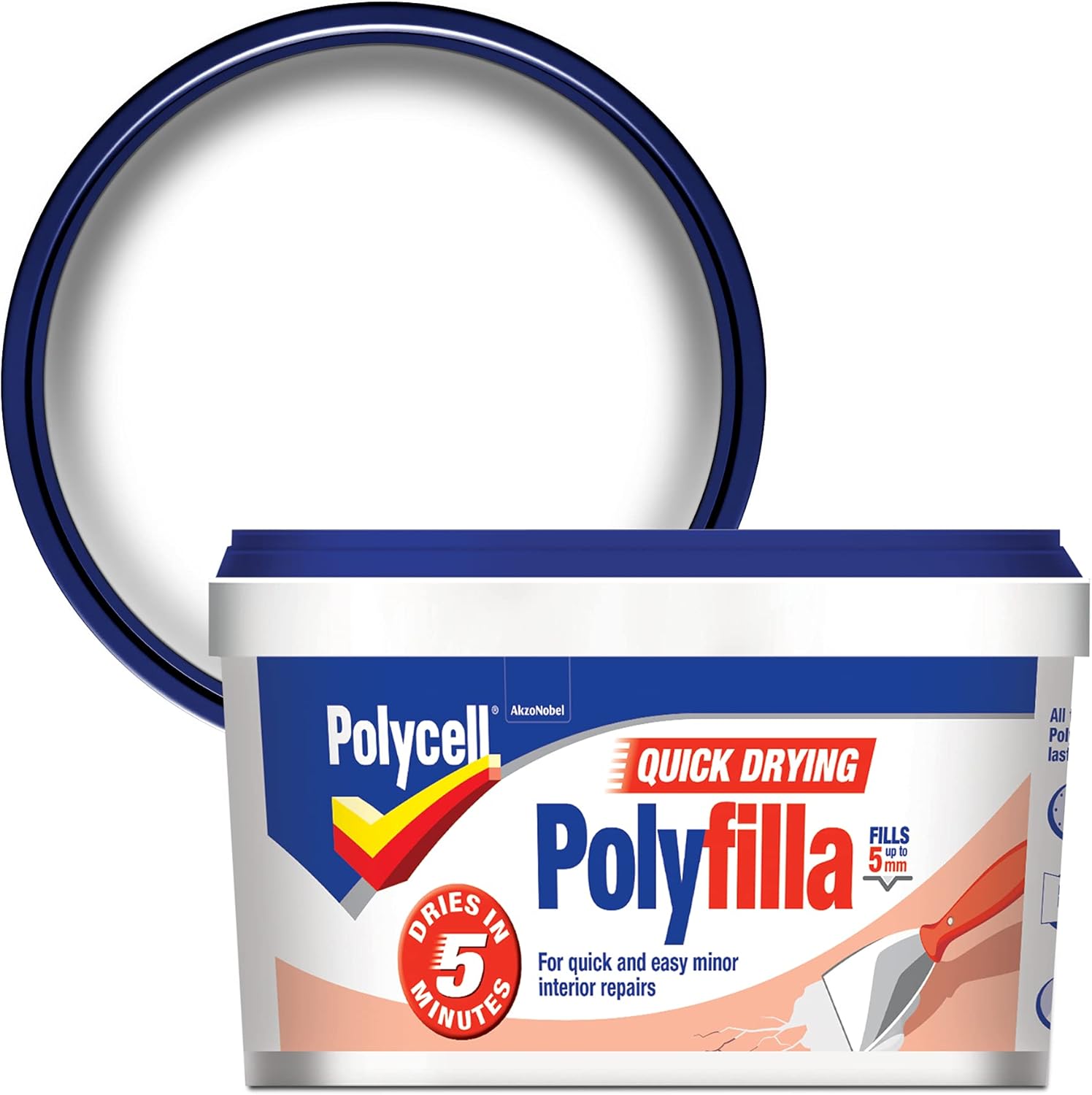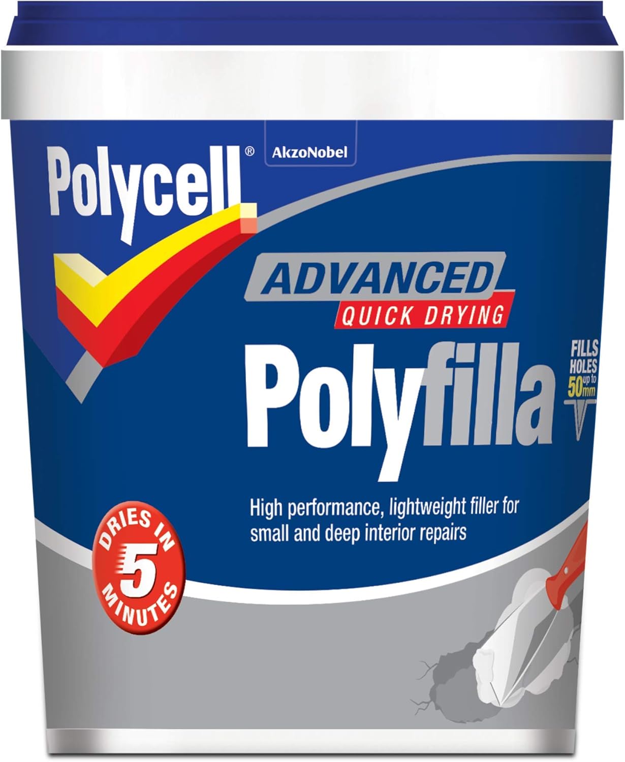 Polycell Advanced Polyfilla is a high performance, lightweight filler for general interior repairs. The quick drying formulation will not shrink or sag and has been specially developed to allow the filling of holes of up to 50mm deep in one go. Advanced Polyfilla has a smooth texture, meaning that it does not have to be sanded and will not show once painted. Ideal for plaster, plasterboard, ceiling coving and mouldingsThe Polycell PLCAPF600 Advanced Polyfilla Tub comes in the following:Size: 600ml. Surface dry in 15 minutes. Polyfilla Advance All In One Tub 600ml
