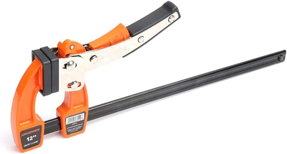 Lightweight Jorgensen gear clamps are ideal for projects that require constant use of clamping and unclamping. A distinctive power bar design allows for rapid action, and a handy quick‑release button allows for the instant release of clamping pressure. Available with four‑inch, eight‑inch, and twelve‑inch max openings.