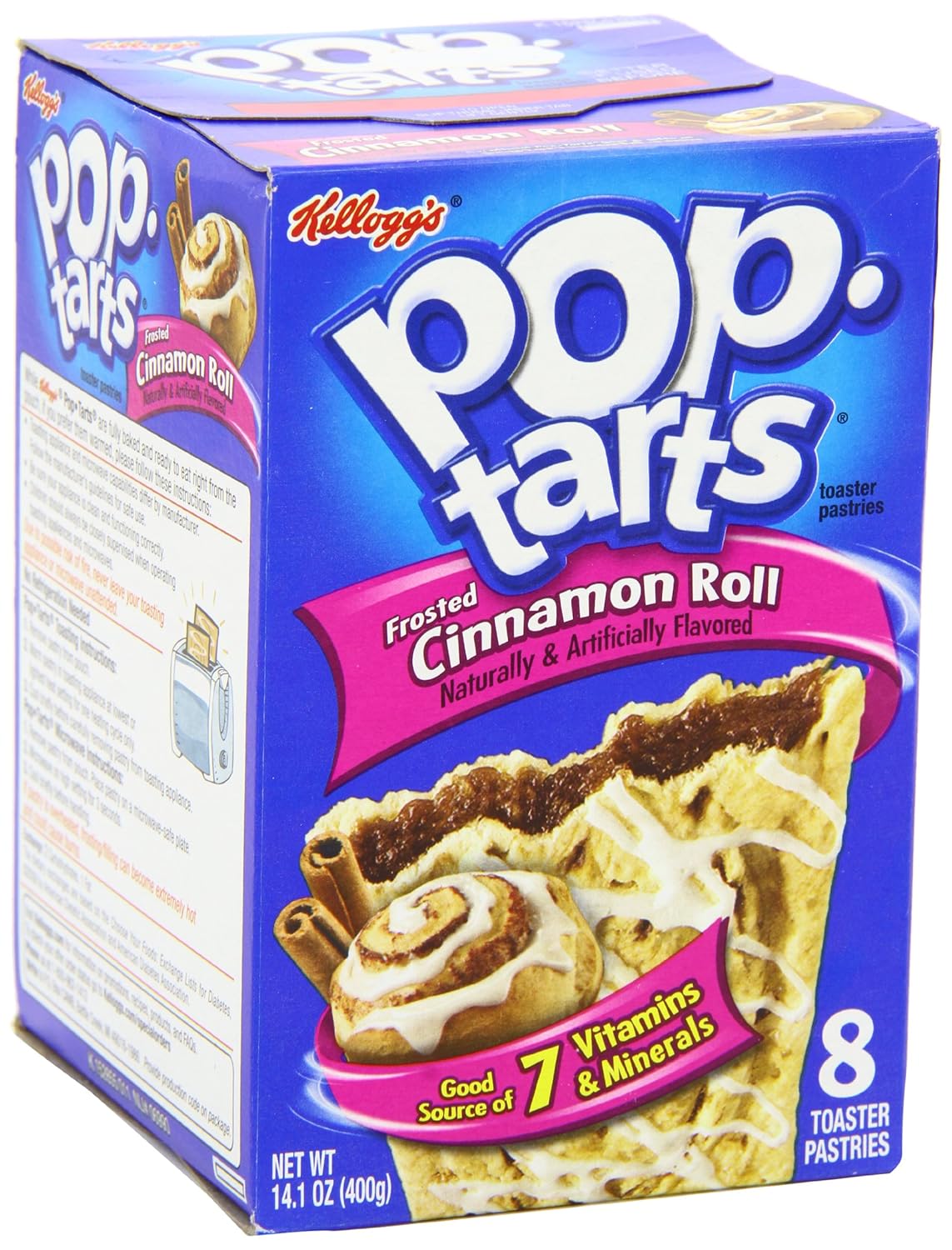 Since 1906, Kellogg’s has provided delicious, ready-to-eat breakfast products to help families start their mornings right. Kellogg’s Pop-Tart Cinnamon Roll pastries are enriched-wheat pastries with a sweet cinnamon and brown sugar filling — just like a real cinnamon roll, but with much less fat and much more nutritional value! These tasty breakfast toaster pastries are ready to eat from the box or heat in the microwave or toaster. They’re a good source of seven vitamins, and they have no trans fat and no cholesterol.Make these toaster pastries a part of your breakfast, or snack on them as a healthy alternative to doughnuts and candy bars.