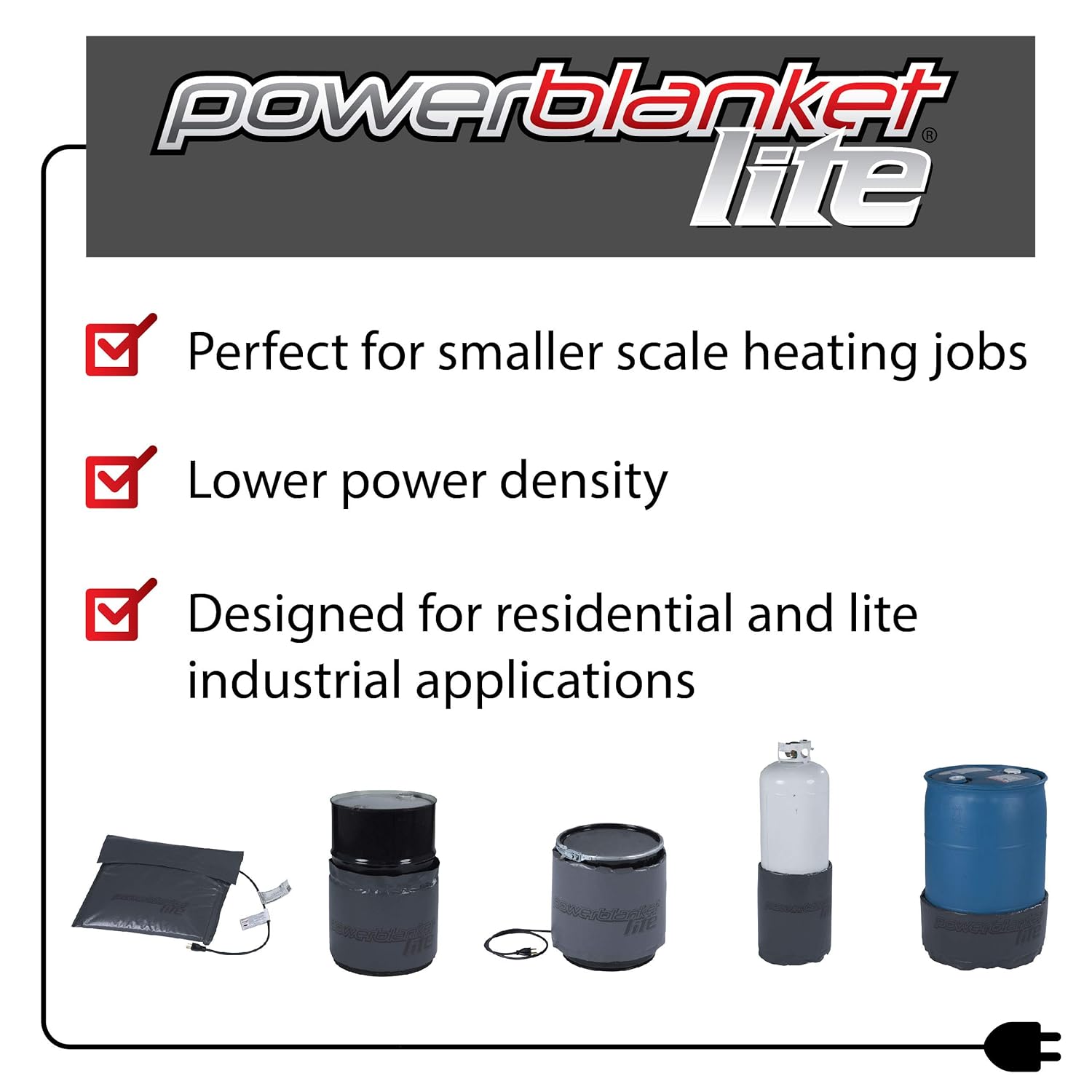 Powerblanket Lite line is designed for heating jobs on a smaller scale. These models feature a lower power density than Powerblanket Industrial or Powerblanket Xtreme products. Rest assured that these heaters are the real deal! Keep your drums, barrels, buckets, pails and gas cylinder propane tanks warm in bitter climates so that you don't lose any production time, saving you both time and money.