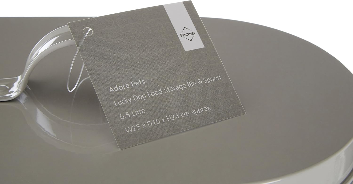 Premier Housewares Adore Pets Lucky Dog Food Storage Bin with Spoon, 12 L – Natural