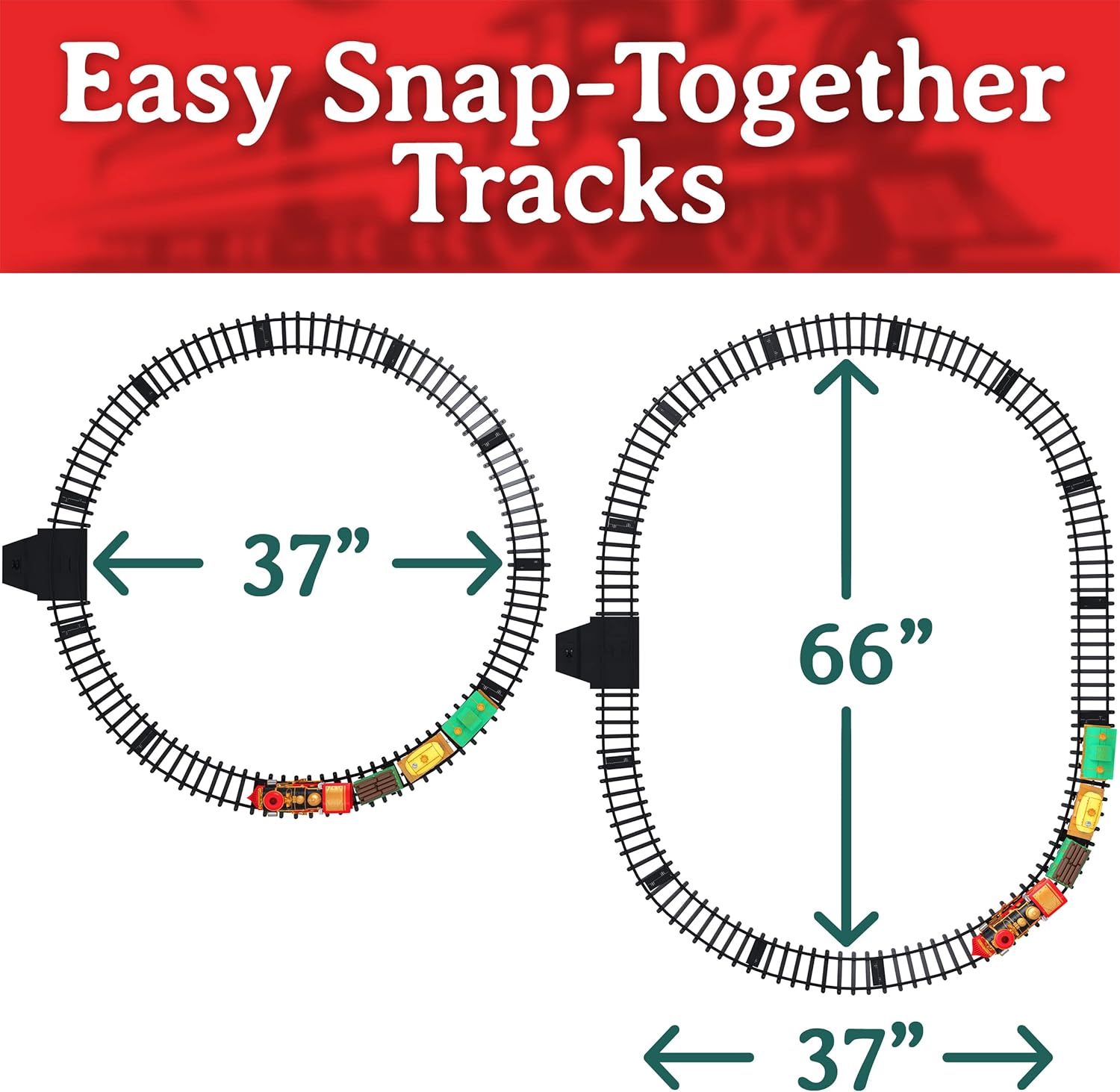 - REALISTIC MUSICAL SOUNDS, LIGHTS, & SMOKE: Enjoy your Musical Train with realistic Sounds of a Locomotive Horns and Enjoy Listening to the Famous ‘We Wish You a Merry Christmas’ and ‘Jingle Bells’ melody. Smoke and lights will excite your child who wants Christmas year-round!