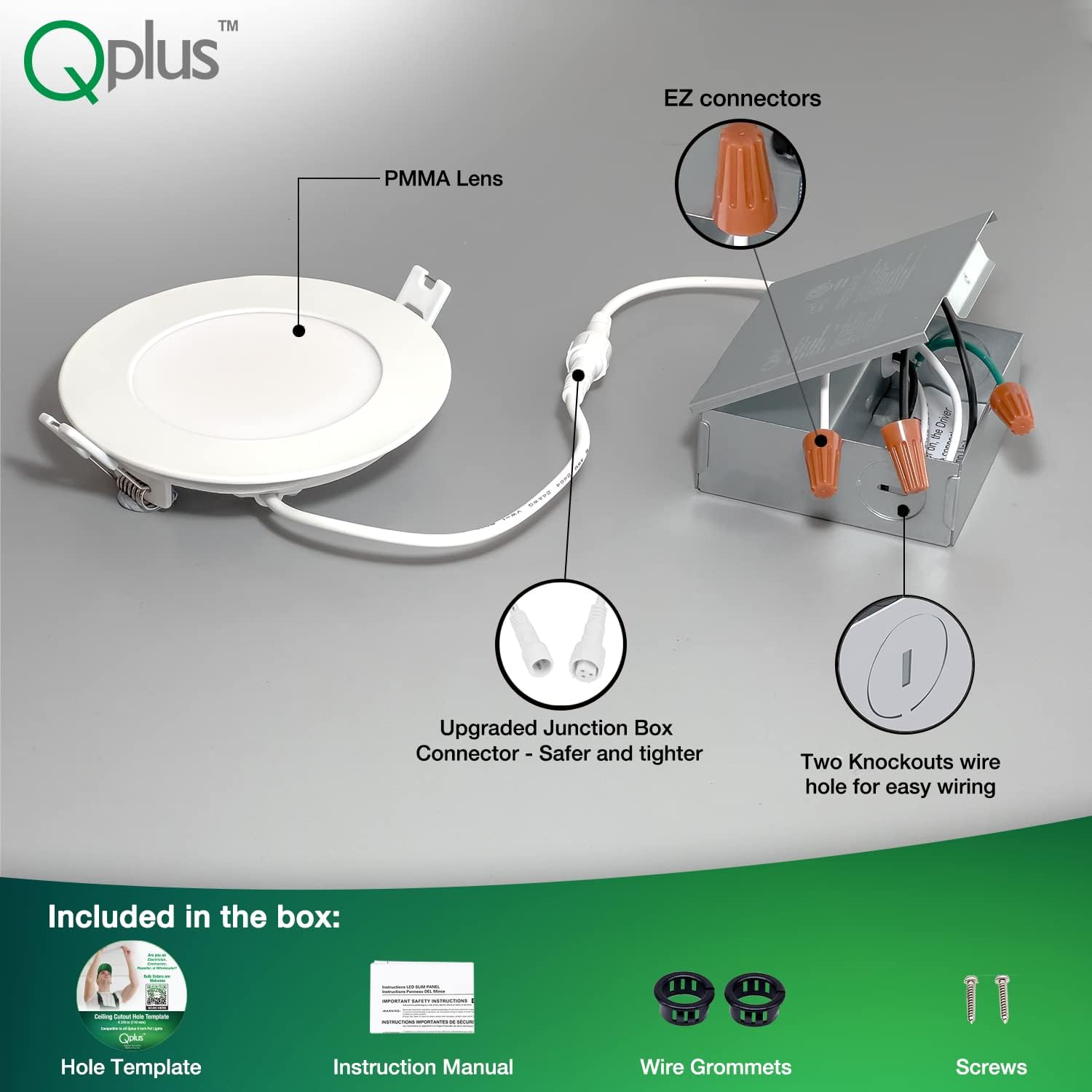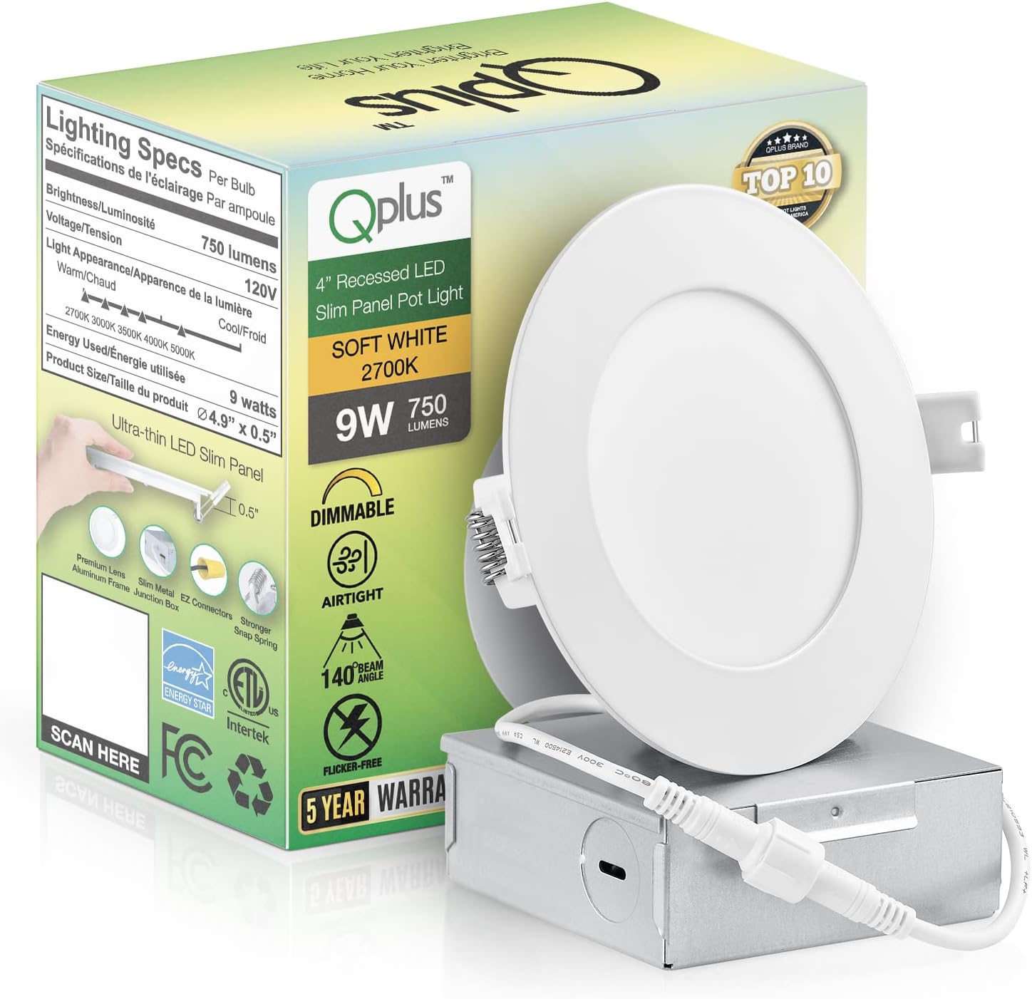 4 Inch LED Slim Panel Recessed Pot Lights with Junction Box