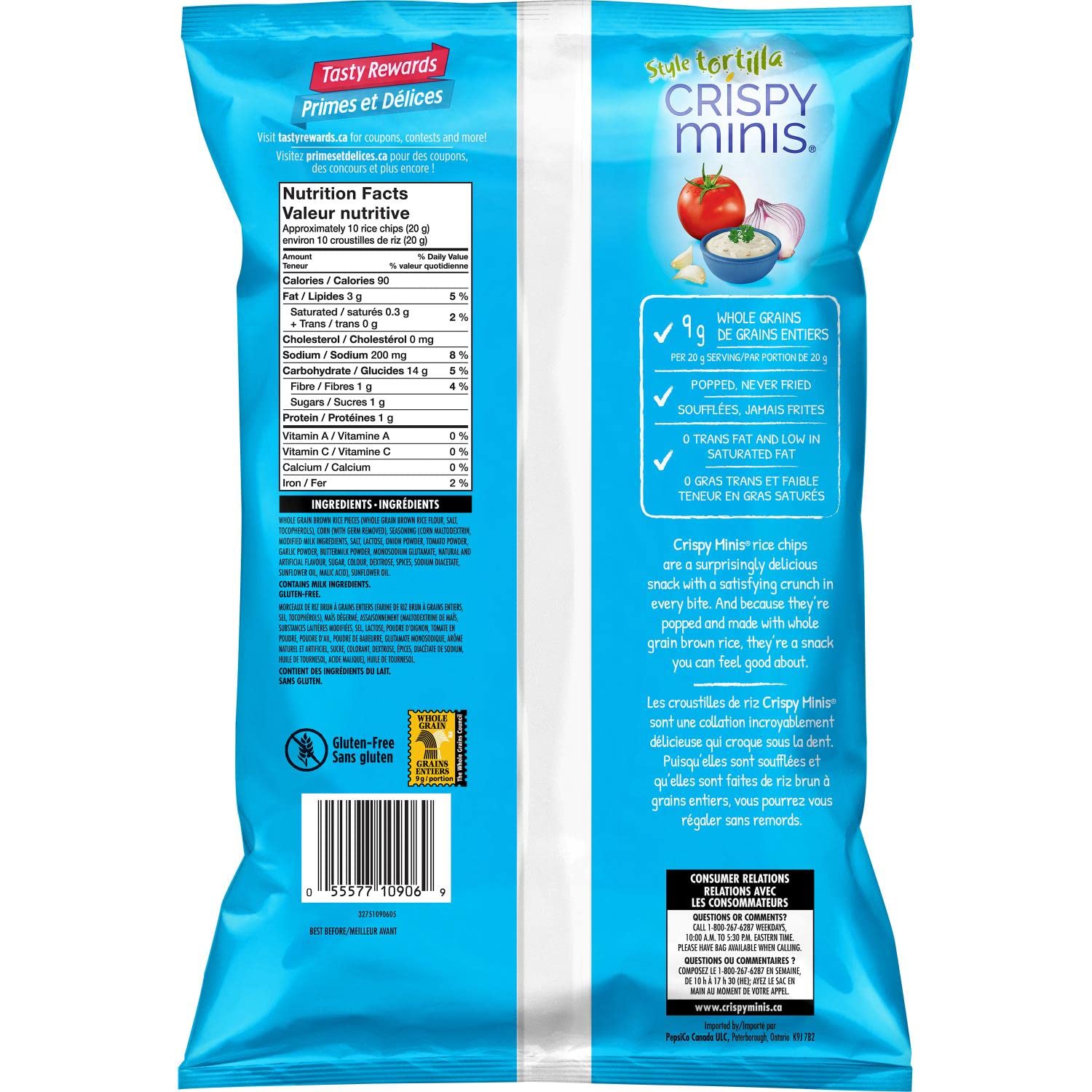 Quaker Crispy minis tortilla style rice chips are deliciously crispy with a light texture. They are made from grains like rice and corn then sprinkled with a tasty, bold seasoning to provide you with a wholesome snack that you will love.