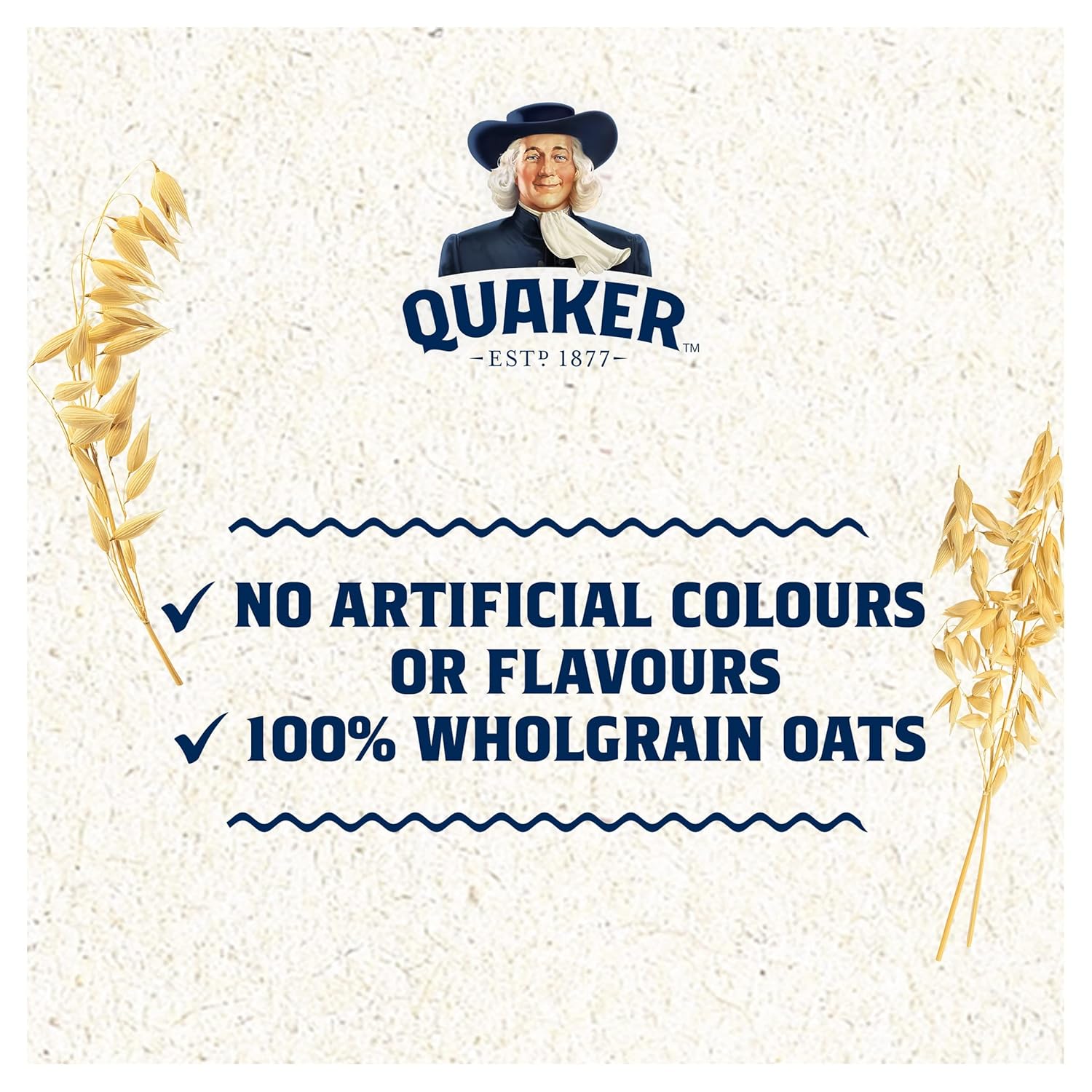 Our cereals contain the delicious goodness of wholegrain oats which are a great source of fibre. 100 Percent quaker rolled microwaveable oats, containing no artificial colours, flavours or preservatives.