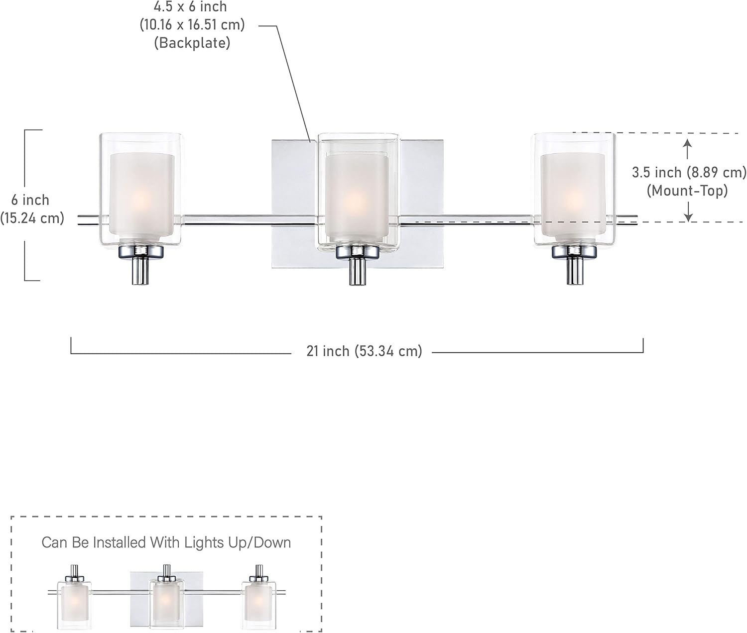 - KOLT VANITY LIGHT DIMENSIONS: 6″ High x 21″ Wide, Weight: 4.3 LBS, Backplate: 6.5″ W x 5″ H