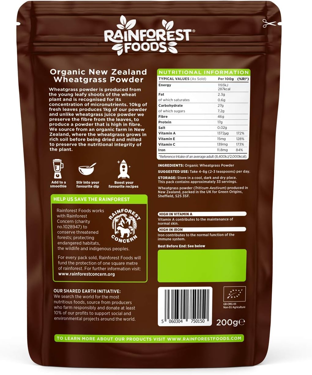 Rainforest Foods Organic New Zealand Wheatgrass Powder 200g