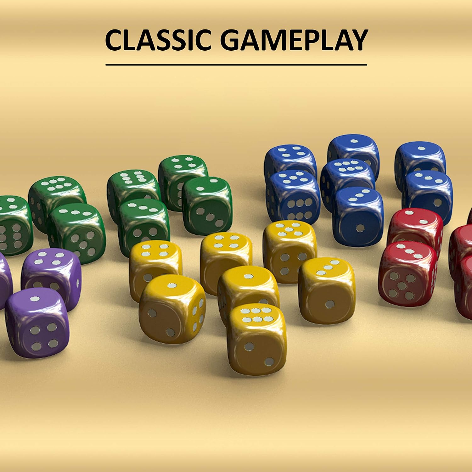 - What you get – 1 dice arena, 6 casinos, 8 double-sided boards, 51 dice, 20 chips, 15 tokens, 90 money cards, and instructions.