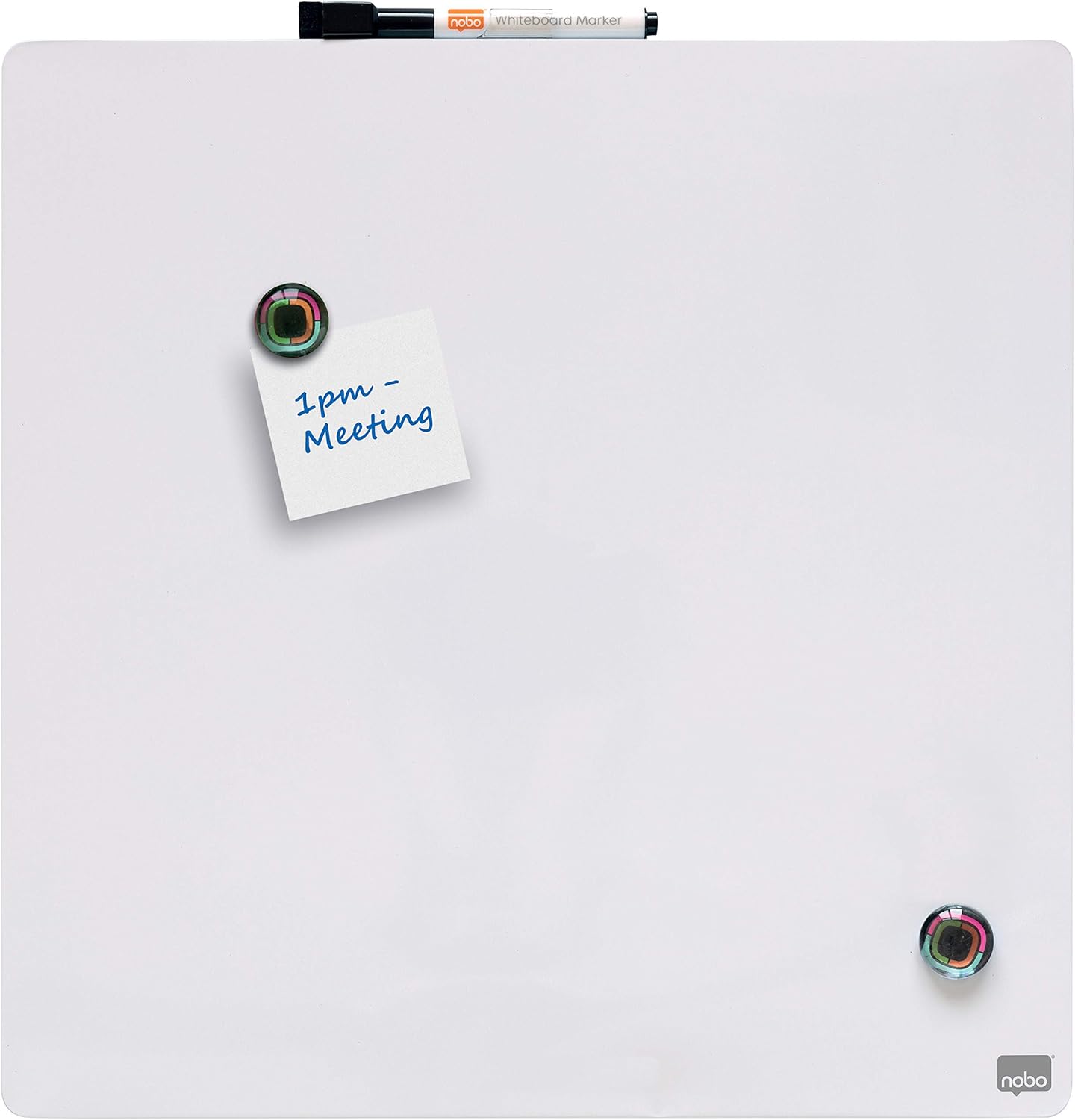 Magnetic dry-erase board, frameless square tile Includes two magnets, one rewritable marker, mounting magnets and foam adhesive tape Modular system – mix, match and combine with other Quartet noticeboards WxH: 360x360mm White