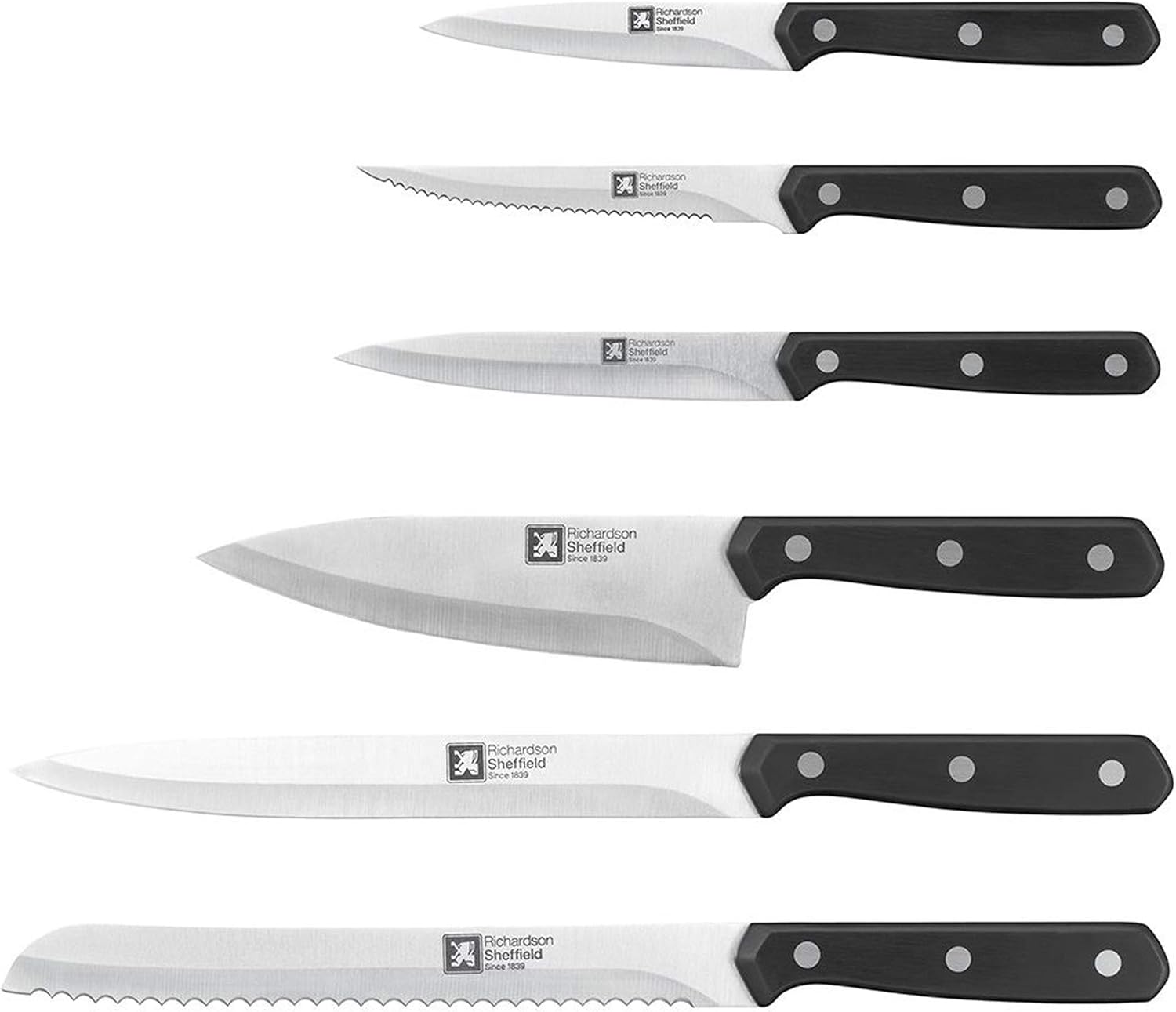 CUCINA-A real kitchen essential. Quality guaranteed. Created to withstand the demands of a busy kitchen. Quality you can trust in a smart everyday product. Full tang construction for extra strength, balance and stability. High quality Martensitic stainless steel blade, hollow ground for a finer cut. Comfy classic rivet style handle that’s a pleasure to hold. 15 year guarantee. Dishwasher safe.