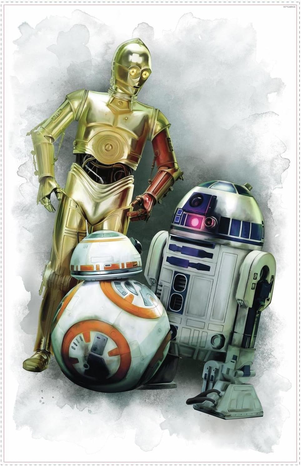 RoomMates RMK3079TB Star Wars The Force Awakens Ep VII R2-D2, C-3PO, and BB-8 Peel and Stick Giant Wall Decal