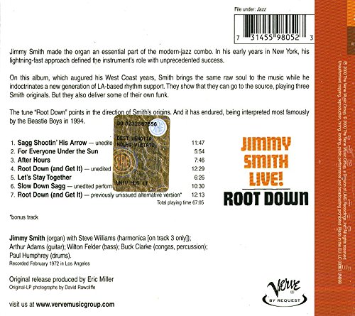 Root Down captures the king of the Hammond B3 organ, Jimmy Smith, playing down and dirty R&B. It isn’t that Smith had forgotten that he was one of the jazz greats for this 1972 live concert, but with an LA rhythm section, there is definitely a groove here. A damn funky groove, at that. The album includes two versions (one previously unissued) of Smith’s “Root Down,” a song covered by the Beastie Boys in 1994. There is also a hypnotic reading of Al Green‘s pleading “Let’s Stay Together,” which yet again proves that Jimmy Smith is a man with a lot of soul. But it is when he ups the pace that the album really comes alive, such as on his “Slow Down Sagg,” released here in its entirety for the first time. With Arthur Adams accompanying on fat-back guitar, its raw funk would impress James Brown. With Root Down, dancing shoes are essential. –Phil Brett