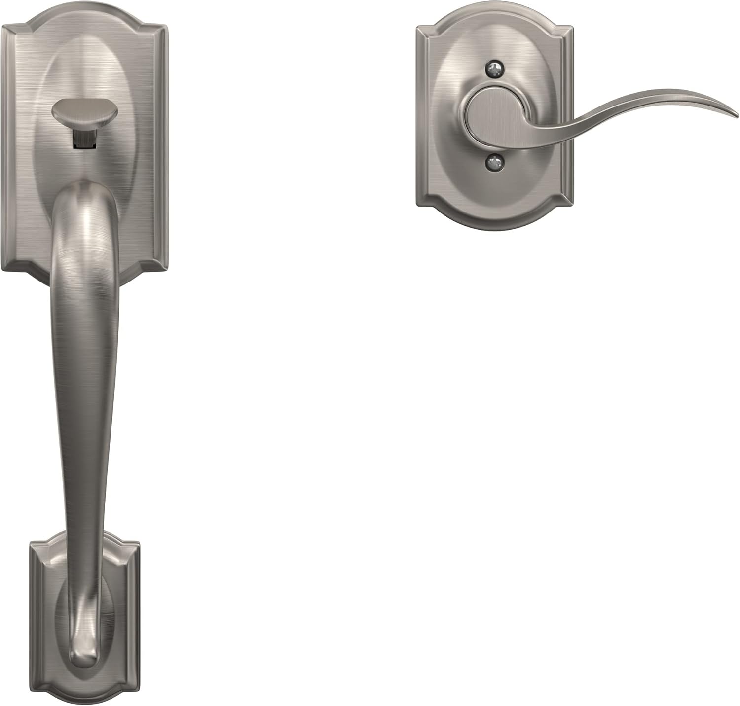 Schlage FE285 CAM 619 ACC LH Camelot Front Entry Handleset with Left-Handed Accent Lever, Lower Half Grip, Satin Nickel