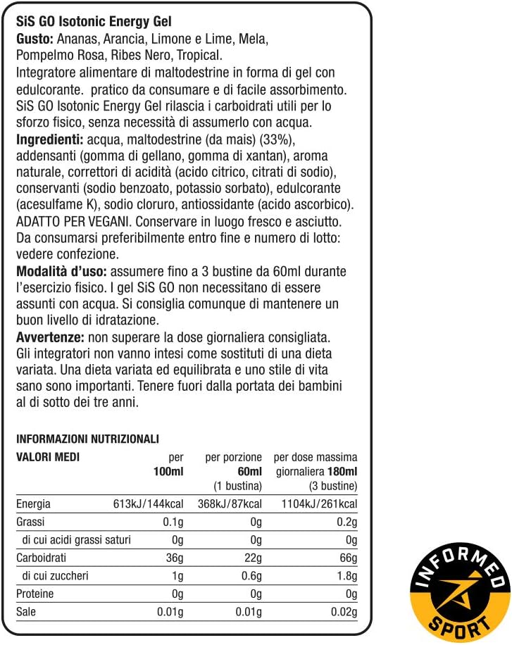 - Consume up to 3 sachets per 60 minutes during exercise as required.