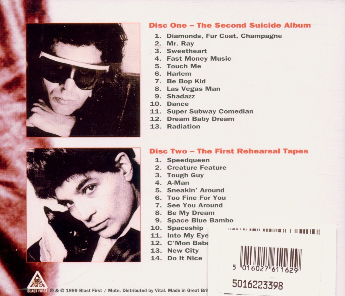 Reissue of the 1980 & second album by Martin Rev & Alan Vega’s influential post-modern rock duo. Contains all of the tracks from the original release, plus two unmarked bonus tracks, ‘Dream Baby Dream’ & ‘Radiation’, added to the end of it. Also included is a 14 track collection of 1975 recordings entitled ‘The First Rehearsal Tapes’, for a total of 16 bonus tracks. A grand total of 27 selections. Double slim-line jewel case. 1999 release.