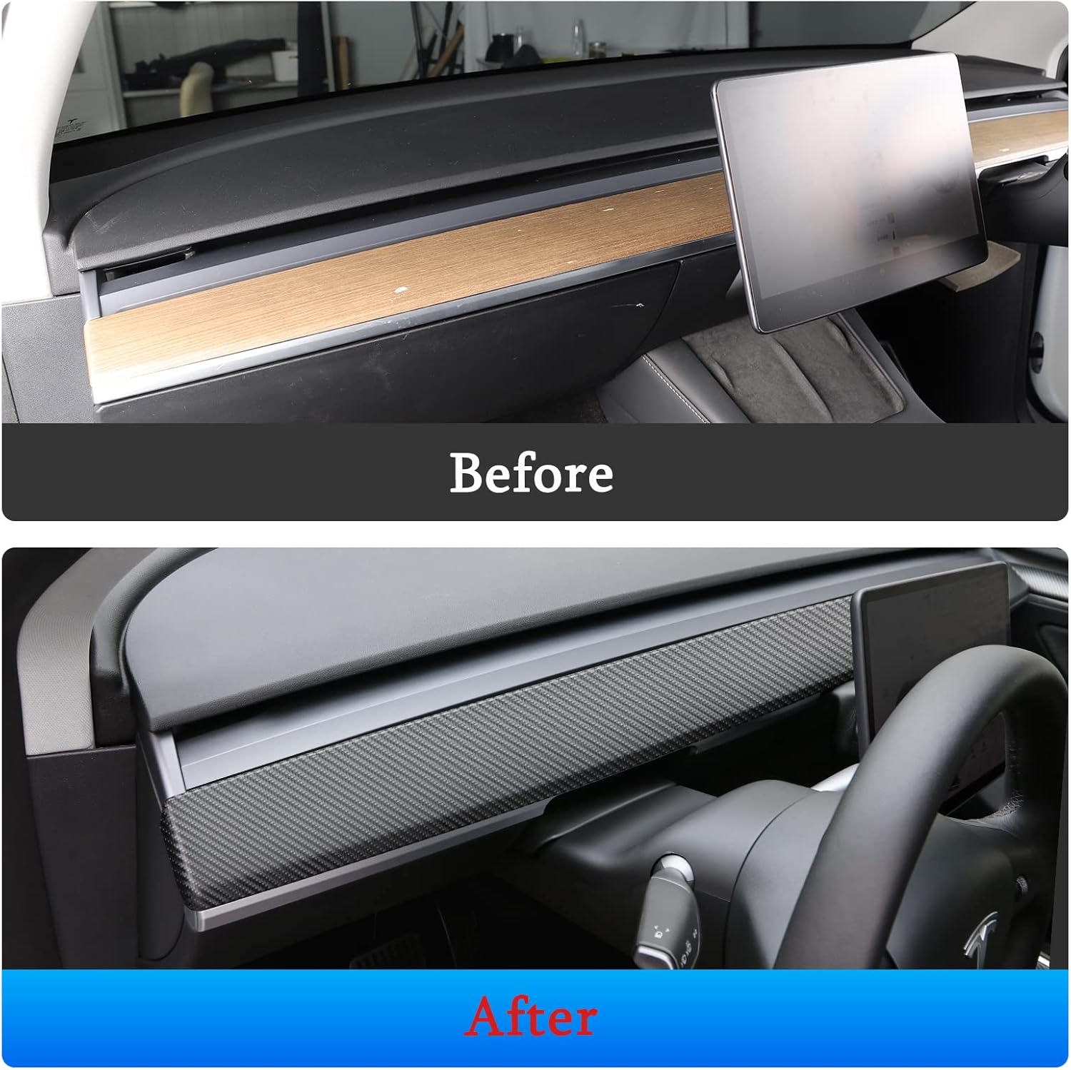 ShowEv Tesla Model Y Dashboard Dash Cover Trim,Wood Door Panel Wrap Carbon Fiber Pattern Protector for Tesla Model Y Interior Accessories with Card Holder,Rear Under Seat Air Vent Cover(Matte,6 PCS)