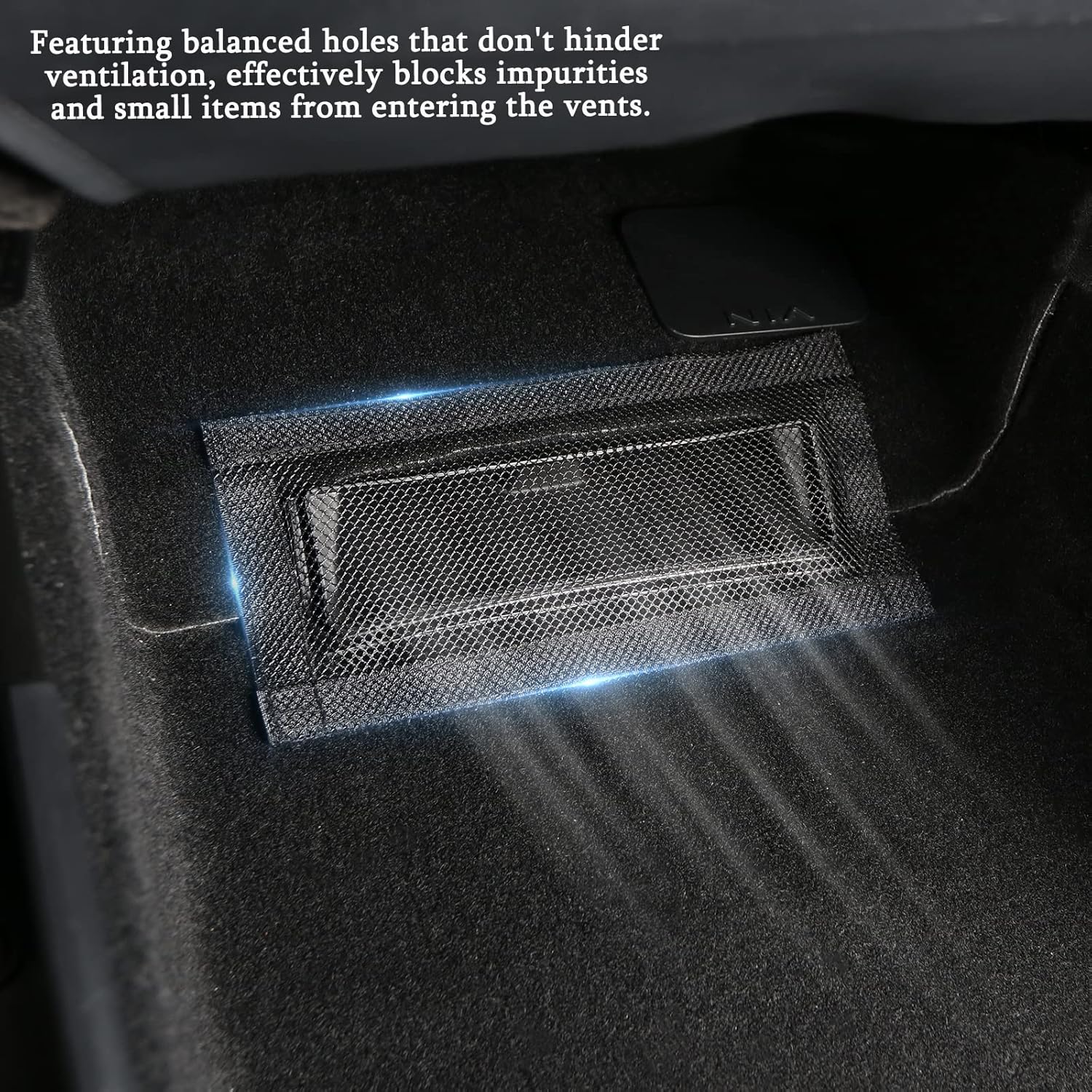 - REAR UNDER SEAT AIR VENT COVER – Made of mesh,easy to install with velcro.Featuring balanced holes that don’t hinder ventilation,the Model Y air vent cover effectively blocks impurities and small items from entering the vents.
