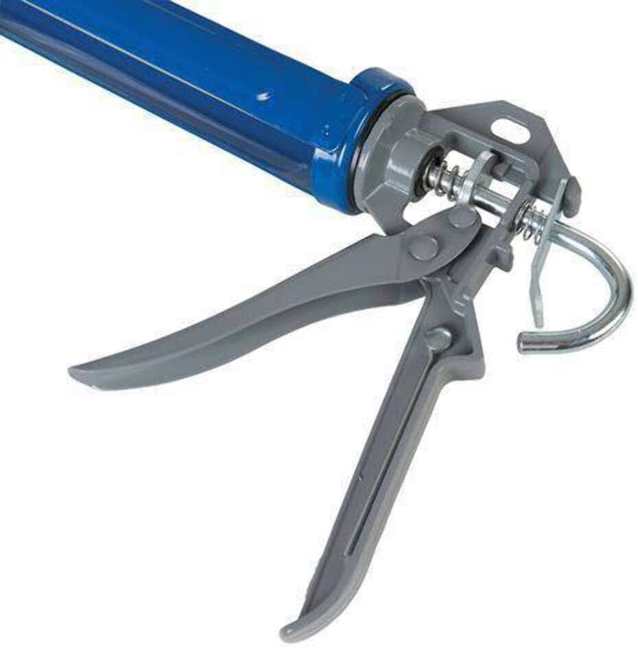 For easy application of sealant or adhesives around corners without having to stop or reposition the nozzle. Handle combines plunger and release clip.
