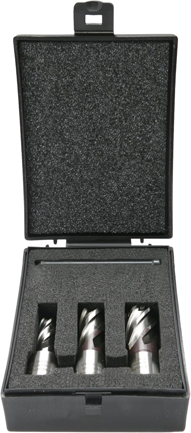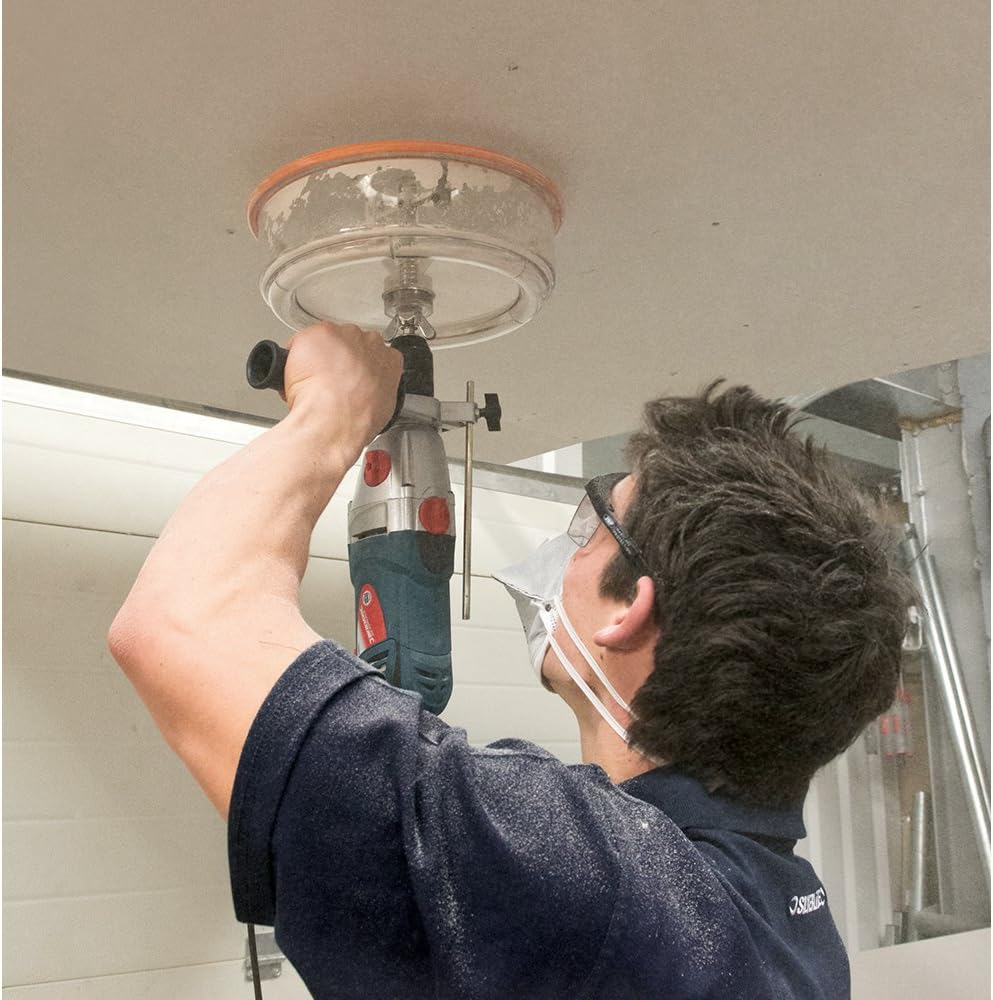 Cowl with two cutters for wood, plastic, plasterboard, aluminium, brass and acrylic sheets. Cutter arm has diameter graduations at 5mm intervals. Cowl reduces debris and risk of injury from flying particles. Includes hex key, 1 pair of TCT-tipped blades, 1 pair of carbon steel blades, lip and spur bit, and TCT-tipped masonry drill. Maximum 500rpm.