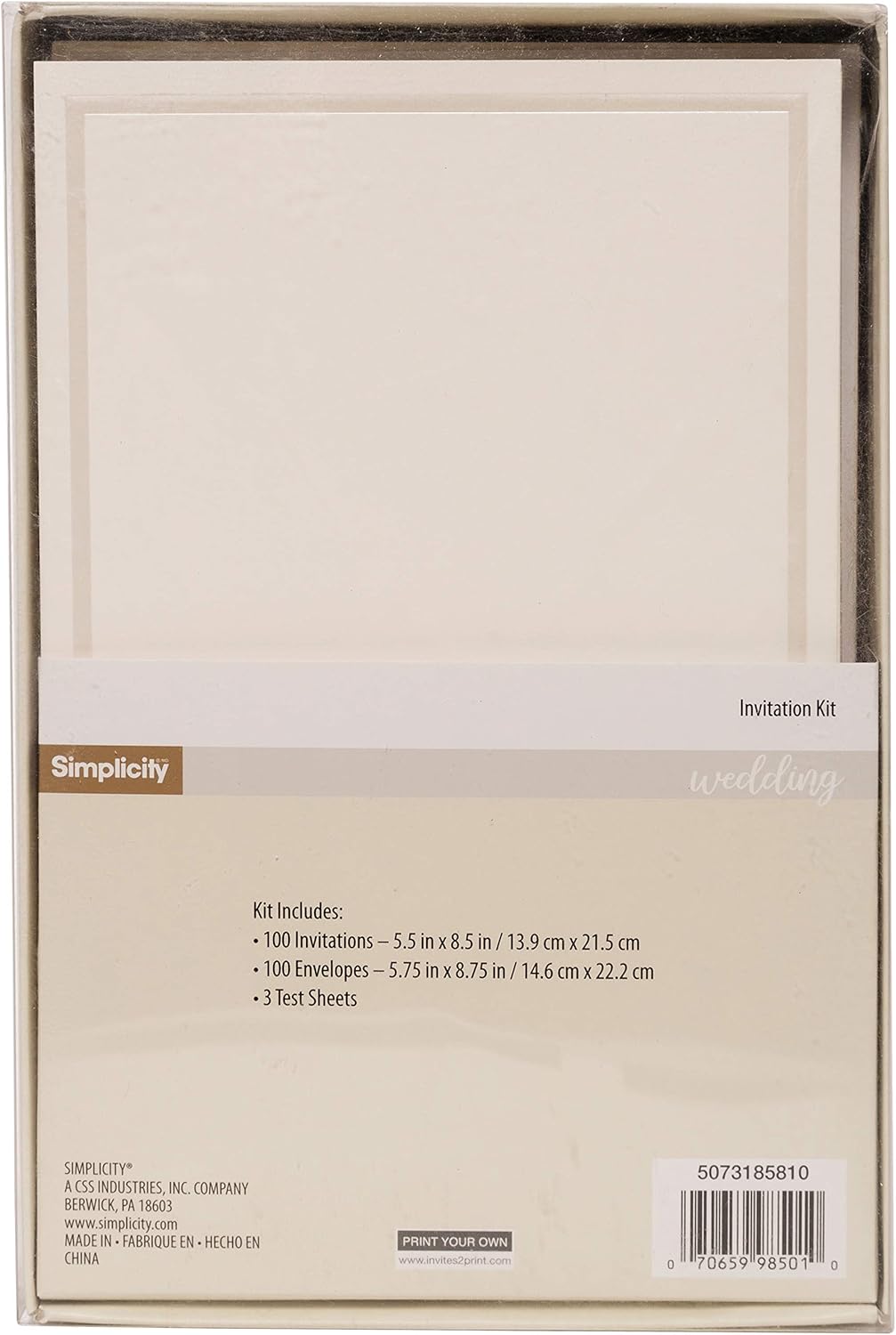 Simplicity Ivory White Wedding Invitation Kit with Envelopes, Makes 100 Invitations, 5.5″ W x 8.5″ L