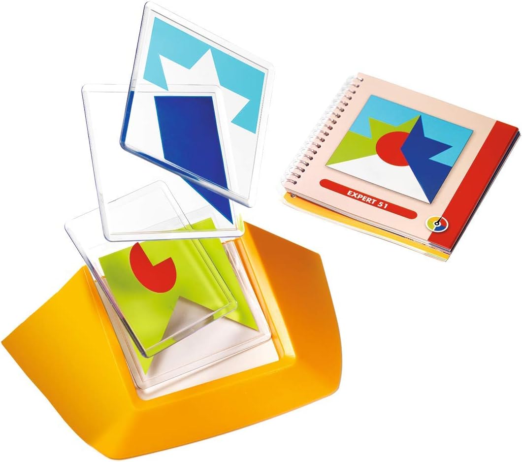 Replenish the required illustration! A challenge is to choose from the 100 proposed. Appears an illustration to reconstitute from the 18 transparent wafers to be overlayed. Thanks to the colors visible in the figure, the player can select the pads to use, knowing that they are all monochrome and that only 2 of them contain the same color. But once the color pads have been identified, it will still be necessary to find out in which direction and order to place these different wafers to reproduce the requested illustration. 4 scalable difficulty levels are proposed, with an increasing number of platelets needed: 2 at the Starter level, then 1 additional per level, to reach 5 in Master. The number of possible combinations is therefore only increasing, to spice up the game and satisfy all ages