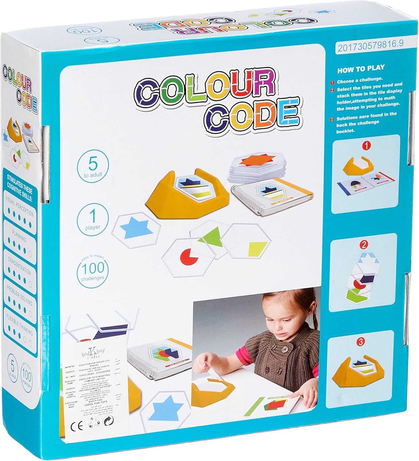 18 transparent inserts in 9 colours, 1 hoof, 1 game booklet containing 100 challenges and all solutions