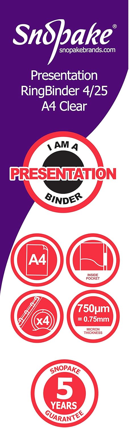 Snopake A4 4 O-Ring 25 mm Presentation RingBinder – Clear [Pack of 1] Ref: 13368s
