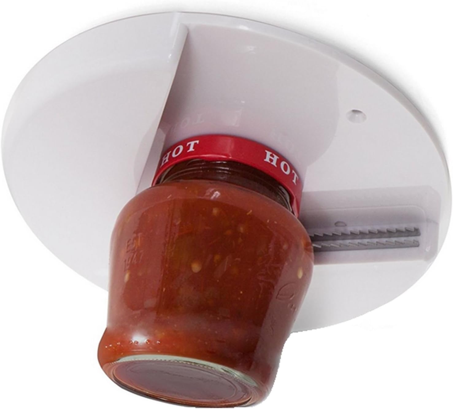 Suitable aid for the elderly, children, or those suffering with arthritis, carpal tunnel and fibromyalgia. Easy installation in your kitchen or cooking space. To install simply peel adhesive sticker and apply to the back of the jar opener and install to a desired space. Ideal for homes, break rooms, and offices. Placement under counters or along kitchen shelves. Two optional screw holes available for added stability. The leverage allowed by the powerful teeth easily removes even the toughest lid. Its that easy to save your hands from the pain and frustration of tight lids and tops.