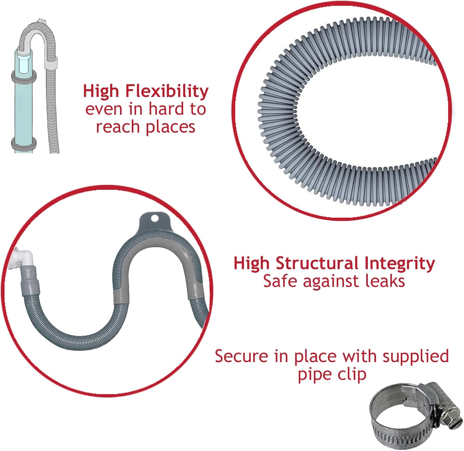 Replacement Drain Hose Extension with Integrated Adapter made for SPARES2GO to fit select LG Washing Machines