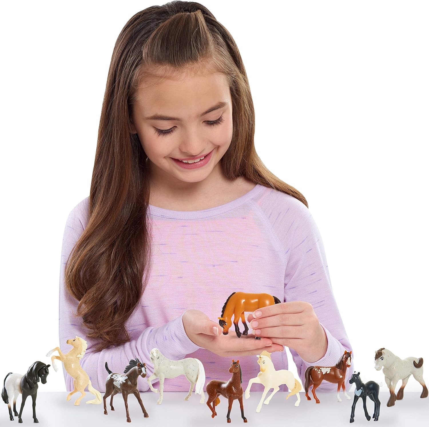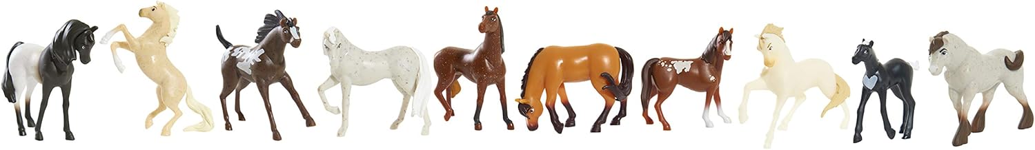 Now fans of the Netflix original series, DreamWorks Spirit riding free, can collect an entire herd of horses! the Spirit riding free mini horse collection comes with 10 realistic horse characters inspired by the show! the figures come in a fun collectible 2″ size and feature dynamic poses. Perfect for both play and display! the figures come in a barn-shaped package that can be used to display your amazing collection! ages 3+