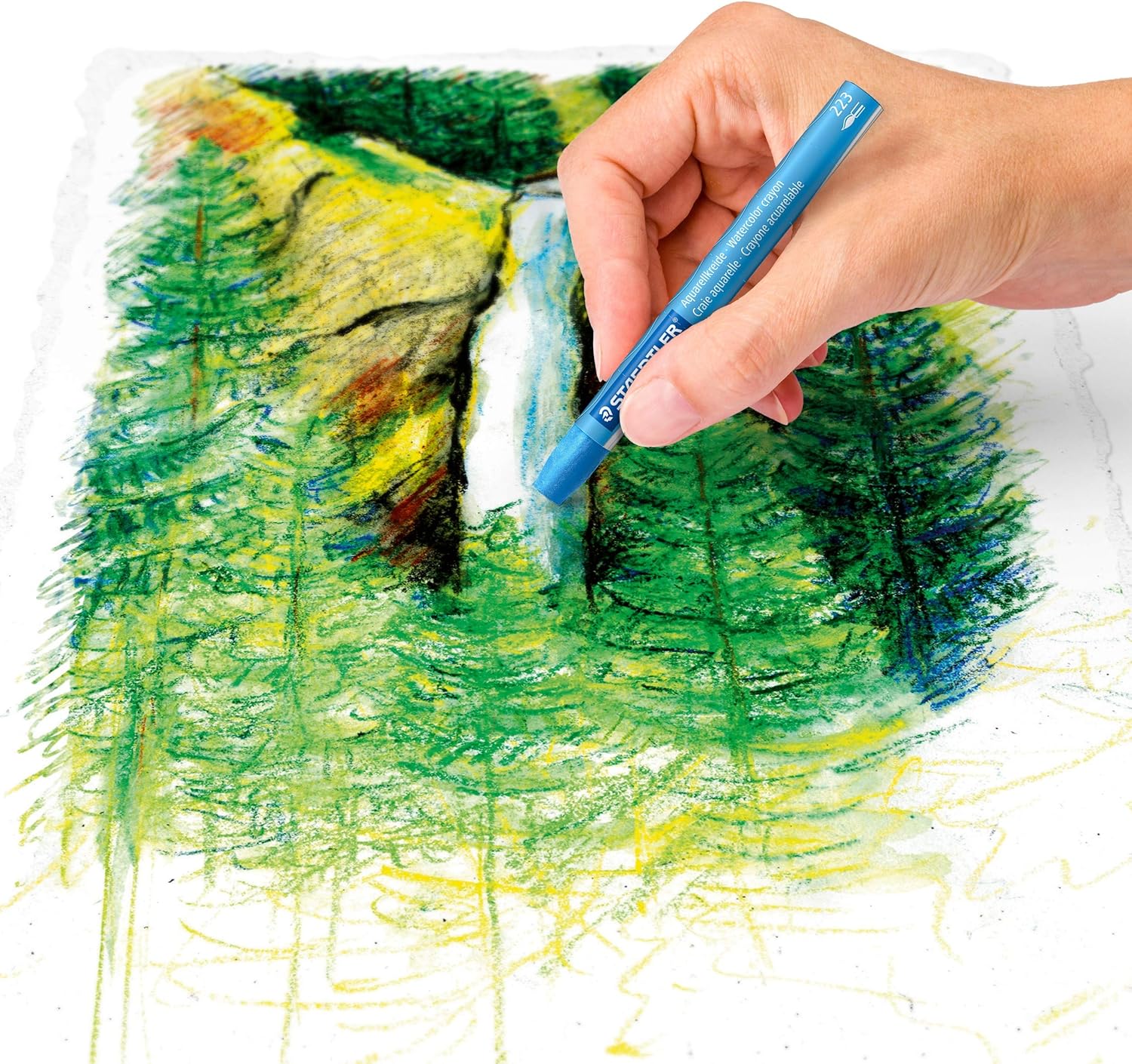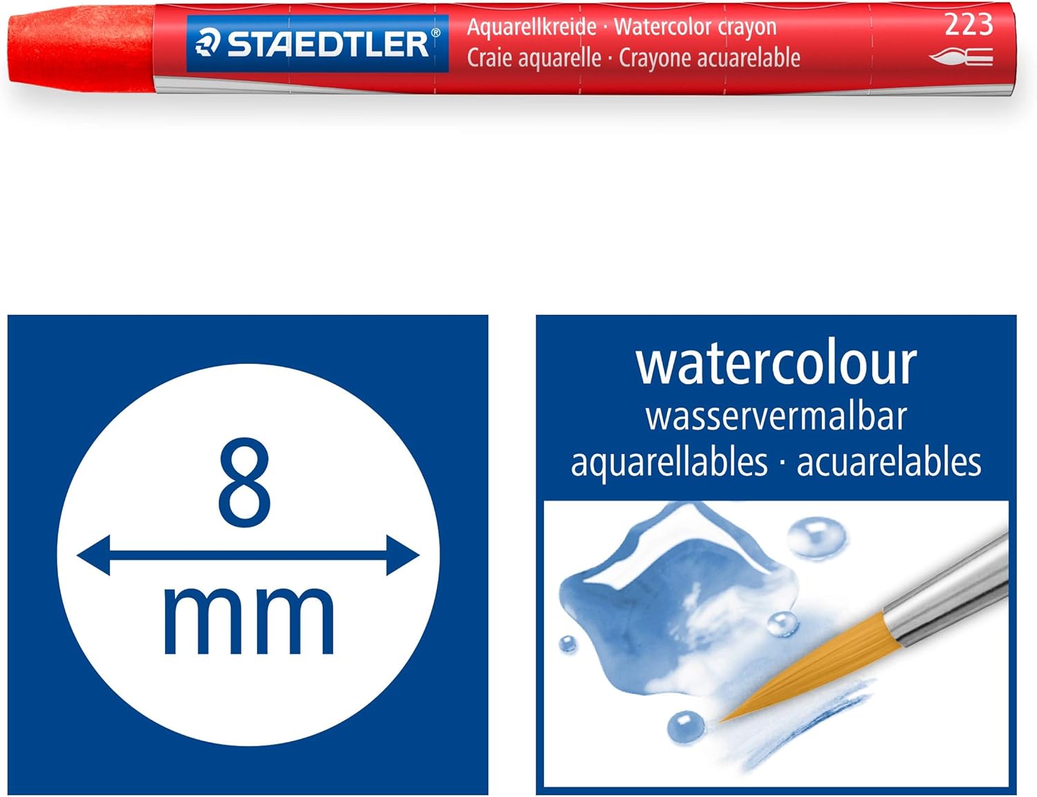 The water-soluble pastel chalks can be easily spreaded with a dampened brush on watercolour paper and are perfectly suited for creating artwork with shading and many other effects. The round crayons are wrapped in paper and their colour does not transfer – the perfect pastel chalk for artists. Diameter 9 mm, length: 90 mm.