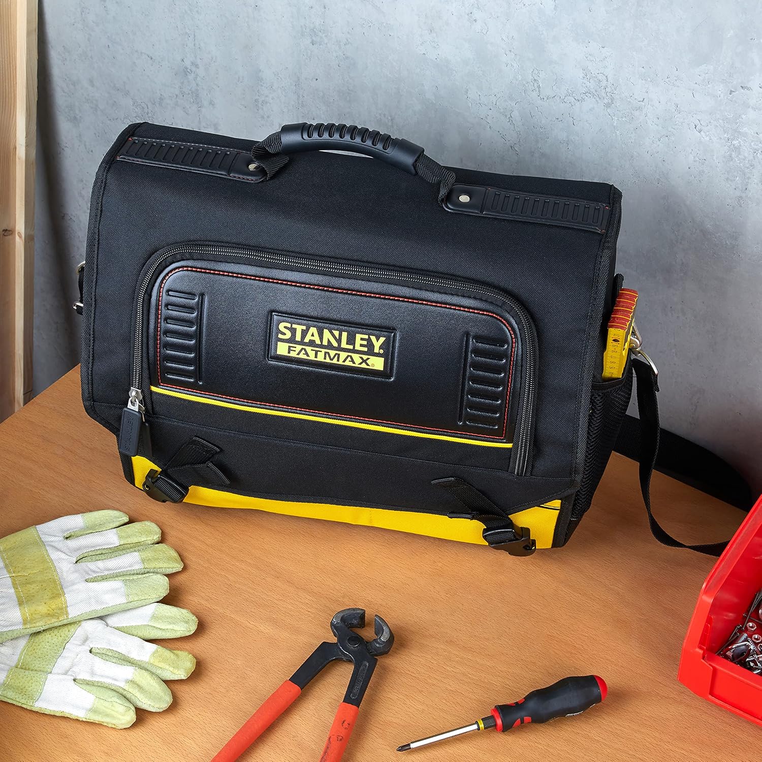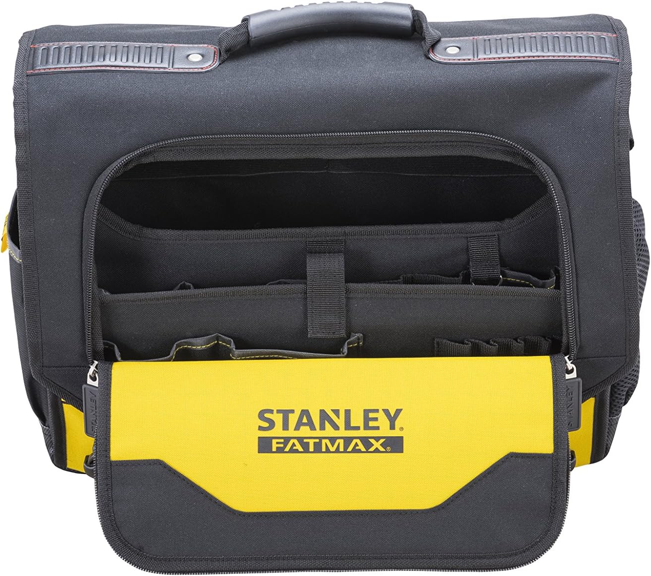 The STANLEY FATMAX Laptop and Tool Bag is a perfect storage solution for collaborating your tools with your digital devices for when you are mobile or on site. The tool bag is constructed from heavy duty 600 Denier material, its water resistant bottom with plastic feet protect against abrasions and general wear and tear. An ergonomic carrying handle and strap have been included for improved comfort. There is a padded pocket compartment which has been designed for storing a laptop, tablet or A4 documents. The front panel of the bag allows for quick access to your tools without the need to open the entire bag. The unit is fully compatible with the STANLEY FATMAX Rolling bag and can be used in conjunction as a whole system.